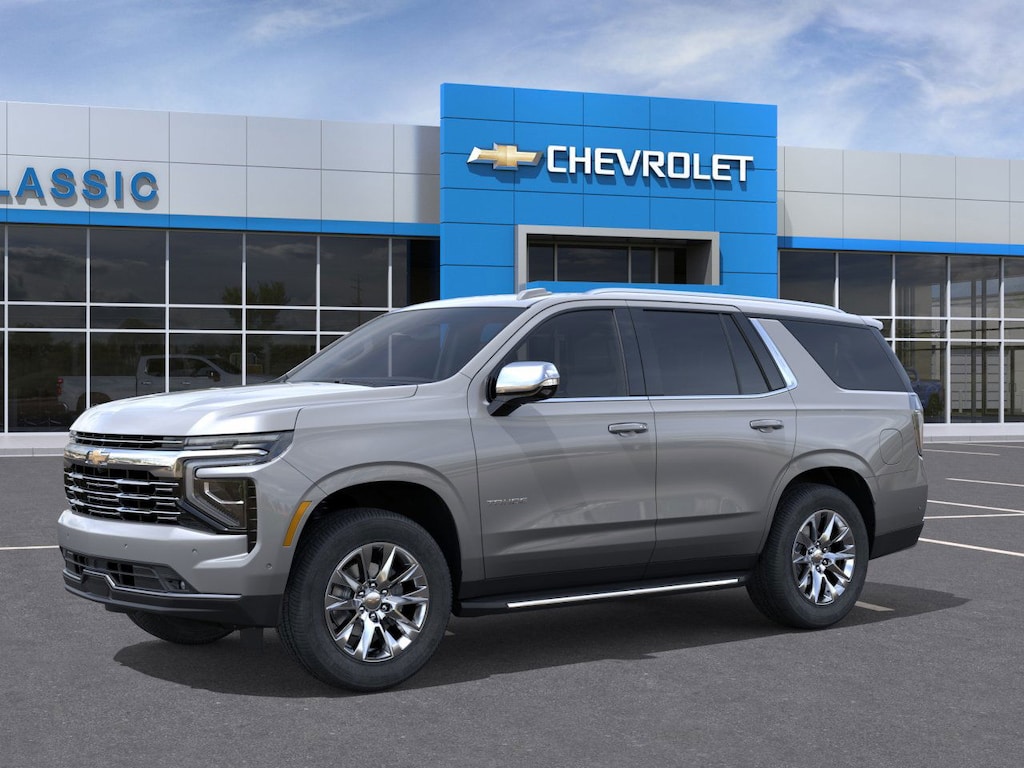 License Plate Front Mounting Package, Preferred Equipment Group 1LZ (1st and 2nd Row Color-Keyed Carpeted Floor Mats, 20 x 9 Polished Aluminum Wheels, 3-Spoke Wrapped Steering Wheel, 3rd Row 60/40 Power-Folding Split-Bench Seat, Auto-Dimming Inside Rear-View Mirror, Bose 10-Speaker Centerpoint Surround Audio System Feature, Bright Front and Rear Door Sill Plates, Chrome Door Handles with Body-Color Strip, Chrome Mirror Caps, Color-Keyed Carpeting Floor Covering, Dual Exhaust System, Floor Console, Front Bucket Seats, Front LED Fog Lamps, Front Pedestrian and Bicyclist Braking, Frontal Driver and Outboard Passenger Airbags, Heated 2nd Row Outboard Seats, Heated Steering Wheel, LED Headlamps with LED Daytime Running Lamps, LED Tail Lamps, Magnetic Ride Control Suspension, Memory Settings, Outside Heated Power-Adjustable Mirrors, Power Release 2nd Row Bucket Seats, Power Tilt and Telescopic Steering Column, Rear Power Liftgate, Remote Start, SiriusXM with 360L Trial Subscription, Universal Home Remote, and Wireless Phone Charging), 10 Speakers, 3.23 Rear Axle Ratio, 3rd row seats: split-bench, 4-Way Power Driver Lumbar Seat Adjuster, 4-Way Power Front Passenger Lumbar Seat Adjuster, 4-Wheel Disc Brakes, 8-Way Power Driver Seat Adjuster, 8-Way Power Front Passenger Seat Adjuster, ABS brakes, Adaptive suspension, Air Conditioning, Alloy wheels, AM/FM radio: SiriusXM with 360L, Apple CarPlay/Android Auto, Auto High-beam Headlights, Auto-dimming door mirrors, Auto-dimming Rear-View mirror, Auto-leveling suspension, Automatic temperature control, Brake assist, Bumpers: body-color, Compass, Delay-off headlights, Driver and Front Passenger Heated and Ventilated Seats, Driver door bin, Driver vanity mirror, Dual front impact airbags, Dual front side impact airbags, Electronic Stability Control, Emergency communication system: OnStar and Chevrolet connected services capable, Exterior Parking Camera Rear, Four wheel independent suspension, Front anti-roll bar, Front Center Armrest, Front dual zone A/C, Front fog lights, Front reading lights, Fully automatic headlights, Garage door transmitter, Heated door mirrors, Heated Driver and Front Passenger Seats, Heated front seats, Heated rear seats, Heated steering wheel, Illuminated entry, Low tire pressure warning, Memory seat, Navigation system: Google built-in compatibility (select service plan required, terms and limitations apply), Occupant sensing airbag, Outside temperature display, Overhead airbag, Overhead console, Panic alarm, Passenger door bin, Passenger vanity mirror, Perforated Leather Seat Trim, Power door mirrors, Power driver seat, Power Liftgate, Power passenger seat, Power steering, Power windows, Premium audio system: Chevrolet Infotainment 3 Premium