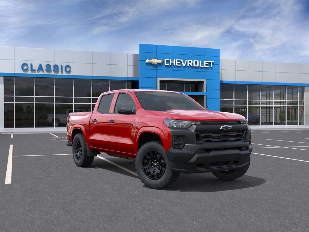 $4,649 off MSRP! Recent Arrival!2026 Chevrolet Colorado Work TruckRadiant Red Tintcoat2.7L I4 Turbocharged DOHC 16V LEV3-ULEV50 310hp4WD8-Speed Automatic4-Spoke Wrapped Steering Wheel, 8-Way Power Driver Seat Adjuster, All-Weather Floor Mats, Automatic Emergency Braking, Black Bowtie Emblem, Black Nameplates, Chevy Safety Assist, EZ-Lift and Lower Tailgate, Following Distance Indicator, Forward Collision Alert, Front Pedestrian and Bicyclist Braking, IntelliBeam Automatic High Beam on/Off, Lane Keep Assist with Lane Departure Warning, Power Driver Lumbar Control Seat Adjuster, Preferred Equipment Group 4WT, Remote Start Kit with 2 Key Fobs, StowFlex Tailgate Storage Compartment, Tailgate Keyed Cylinder Lock, Wheels: 18 x 8.5 Black High Gloss Aluminum, WT Convenience Package II, WT Custom Package.Preferred Equipment Group 4WT (Automatic Emergency Braking, Chevy Safety Assist, Following Distance Indicator, Forward Collision Alert, Front Pedestrian and Bicyclist Braking, IntelliBeam Automatic High Beam on/Off, and Lane Keep Assist with Lane Departure Warning), WT Convenience Package II (4-Spoke Wrapped Steering Wheel, 8-Way Power Driver Seat Adjuster, EZ-Lift and Lower Tailgate, Power Driver Lumbar Control Seat Adjuster, StowFlex Tailgate Storage Compartment, and Tailgate Keyed Cylinder Lock), WT Custom Package (Black Nameplates and Wheels: 18 x 8.5 Black High Gloss Aluminum), All-Weather Floor Mats, Black Bowtie Emblem, Remote Start Kit with 2 Key Fobs, 3.42 Rear Axle Ratio, 4-Way Manual Passenger Seat Adjuster, 4-Wheel Disc Brakes, 6 Speakers, 6-Speaker Audio System Feature, 6-Way Manual Driver Seat Adjuster, ABS brakes, Air Conditioning, AM/FM radio: SiriusXM with 360L, Apple CarPlay/Android Auto, Auto High-beam Headlights, Brake assist, Cloth Seat Trim, Delay-off headlights, Driver door bin, Driver vanity mirror, Dual front impact airbags, Dual front side impact airbags, Electronic Stability Control, Emergency communication system: OnStar, Front anti-roll bar, Front Bucket Seats, Front Center Armrest, Front wheel independent suspension, Heated door mirrors, Low tire pressure warning, Navigation System, Occupant sensing airbag, Overhead airbag, Panic alarm, Passenger door bin, Passenger vanity mirror, Power door mirrors, Power steering, Power windows, Radio data system, Radio: 11.3 Diagonal Advanced Color LCD Display, Rear step bumper, Rear window defroster, Remote keyless entry, Security system, SiriusXM with 360L Trial Subscription, Speed control, Speed-sensing steering, Split folding rear seat, Steering Wheel Mounted Audio Controls, Steering wheel mounted audio controls, Tachometer, Tilt steering wheel, Traction control, Trip computer, Variably intermittent wipers, Wheels: 17 x 8 Ultra Silver Metallic Steel, and Wireless Phone Projection.Awards:* Car and Driver Editors' ChoiceCar and Driver, January 2017. Price includes: $1000 - Customer Cash. Exp. 04/30/2026