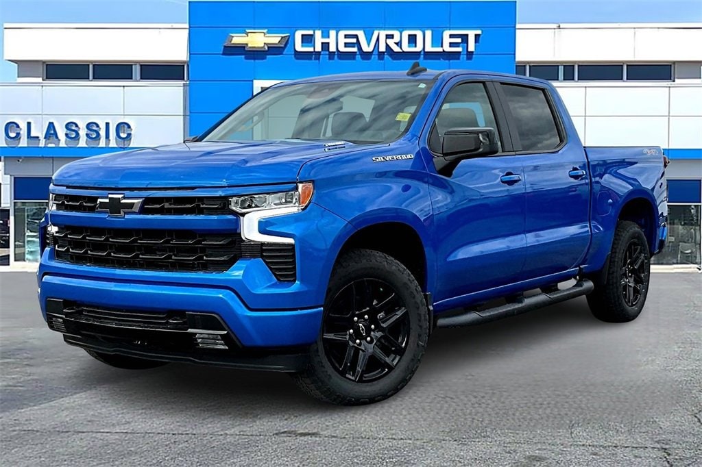 Convenience Package (Dual-Zone Automatic Climate Control, Remote Vehicle Starter System, 10-Way Power Driver Seat w/Lumbar, 120-Volt Bed Mounted Power Outlet, 120-Volt Interior Power Outlet, Dual Rear USB Ports (Charge Only), Electric Rear-Window Defogger, Heated Driver & Front Outboard Passenger Seats, Heated Steering Wheel, Keyless Open & Start, LED Cargo Area Lighting, Manual Tilt/Telescoping Steering Column, Theft Deterrent System (Unauthorized Entry), and Wrapped Steering Wheel), Trailering Package (Hitch Guidance), Standard Suspension Package, ABS brakes, Alloy wheels, Compass, Electronic Stability Control, Front dual zone A/C, Front Frame-Mounted Black Recovery Hooks, Heated door mirrors, Heated front seats, Heated Power-Adjustable Outside Mirrors, Illuminated entry, Integrated Trailer Brake Controller, Low tire pressure warning, Remote keyless entry, Tire Pressure Monitoring System, Traction control, 12.3 Multicolor Reconfigurable Digital Display, 220 Amp Alternator, 4-Wheel Disc Brakes, 40/20/40 Front Split-Bench Seat, 6 Speakers, 6-Speaker Audio System, Air Conditioning, All-Star Edition, AM/FM radio: SiriusXM with 360L, Apple CarPlay/Android Auto, Auto High-beam Headlights, Auto-Locking Rear Differential, Automatic Emergency Braking, Automatic temperature control, Bluetooth® For Phone, Brake assist, Bumpers: body-color, Cloth Seat Trim, Color-Keyed Carpeting Floor Covering, Deep-Tinted Glass, Delay-off headlights, Driver door bin, Driver vanity mirror, Dual front impact airbags, Dual front side impact airbags, Electronic Cruise Control, Emergency communication system: OnStar, EZ Lift Power Lock & Release Tailgate, Following Distance Indicator, Forward Collision Alert, Front anti-roll bar, Front Center Armrest w/Storage, Front fog lights, Front LED Fog Lamps, Front Pedestrian Braking, Front reading lights, Front Rubberized Vinyl Floor Mats, Front wheel independent suspension, Fully automatic headlights, HD Rear Vision Camera, Heated steering wheel, High Gloss Black Mirror Caps, Inside Rear-View Mirror w/Tilt, IntelliBeam Automatic High Beam On/Off, Lane Keep Assist w/Lane Departure Warning, Occupant sensing airbag, OnStar Services Capable, Outside temperature display, Overhead airbag, Overhead console, Panic alarm, Passenger door bin, Passenger vanity mirror, Power door mirrors, Power driver seat, Power Front Windows w/Driver Express Up/Down, Power Front Windows w/Passenger Express Down, Power Rear Windows w/Express Down, Power steering, Power windows, Premium audio system: Chevrolet Infotainment 3 Premium, Radio data system, Radio: Chevrolet Infotainment 3 Premium System, Rear 60/40 Folding Bench Seat (Folds Up), Rear reading lights, Rear Rubberized-Vinyl Floor Mats, Rear step bumper, Rear window defroster, Security system, Single Outlet Exhaust, SiriusXM w/360L Trial Subscription, Speed control, Speed-sensing steering, Split folding rear seat, Standard Tailgate, Steering Wheel Audio Controls, Steering wheel mounted audio controls, Tachometer, Teen Driver, Telescoping steering wheel, Tilt steering wheel, Trip computer, Variably intermittent wipers, Voltmeter, Wheels: 18 x 8.5 Bright Silver Painted Aluminum, and Wi-Fi Hot Spot Capable. Price includes: $1000 - Bonus Cash. Exp. 11/03/2025 $1750 - Customer Cash. Exp. 11/03/2025
