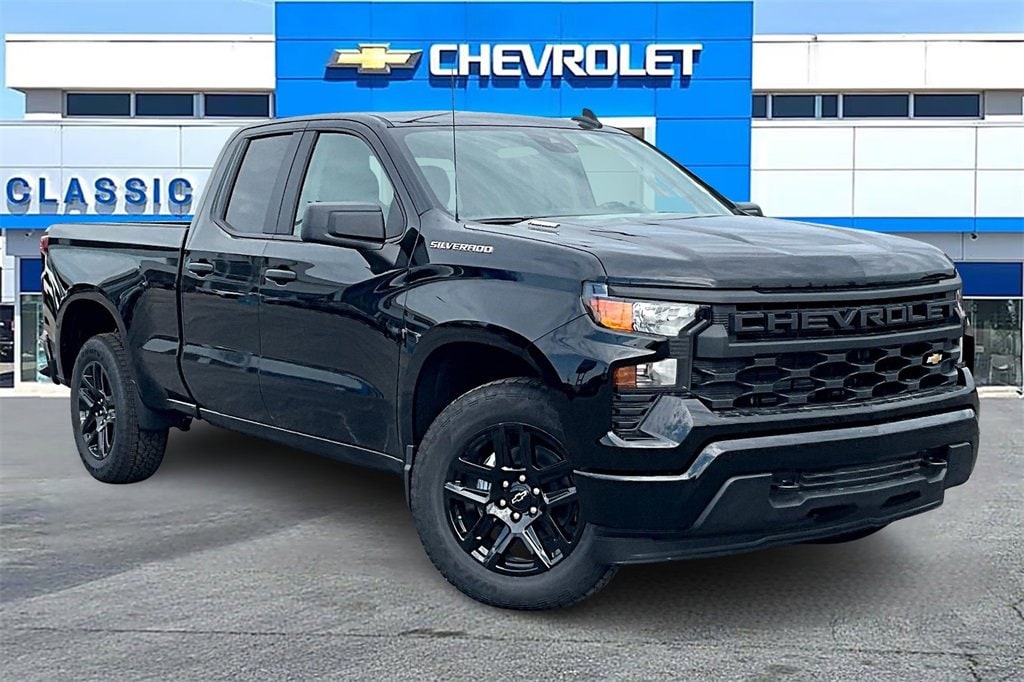 $5,946 off MSRP!2026 Chevrolet Silverado 1500 CustomBlack2.7L I4 Turbocharged DOHC 16V LEV3-SULEV30 310hpRWD8-Speed Automatic10-Way Power Driver Seat w/Lumbar, 120-Volt Bed Mounted Power Outlet, 120-Volt Interior Power Outlet, 3.5 Monochromatic Display Driver Info Center, Auto-Locking Rear Differential, Bluetooth® For Phone, Color-Keyed Carpeting Floor Covering, Custom Convenience Package, Custom Value Package, Deep-Tinted Glass, Dual Rear USB Ports (Charge Only), Electric Rear-Window Defogger, Electronic Cruise Control, EZ Lift Power Lock & Release Tailgate, Front Frame-Mounted Black Recovery Hooks, Front Rubberized Vinyl Floor Mats, HD Rear Vision Camera, High Capacity Suspension Package, Hitch Guidance, Integrated Trailer Brake Controller, LED Cargo Area Lighting, Manual Tilt Wheel Steering Column, OnStar Services Capable, Power Front Windows w/Driver Express Up/Down, Power Front Windows w/Passenger Express Down, Power Rear Windows w/Express Down, Preferred Equipment Group 1CX, Rear 60/40 Folding Bench Seat (Folds Up), Rear Rubberized-Vinyl Floor Mats, Remote Keyless Entry, Remote Vehicle Starter System, SiriusXM Trial Subscription, Standard Tailgate, Teen Driver, Theft Deterrent System (Unauthorized Entry), Tire Pressure Monitoring System, Trailering Package, Wheels: 20 x 9 High Gloss Black Painted Alum, Wi-Fi Hot Spot Capable.Custom Convenience Package (Electric Rear-Window Defogger, EZ Lift Power Lock & Release Tailgate, LED Cargo Area Lighting, Remote Vehicle Starter System, and Theft Deterrent System (Unauthorized Entry)), Custom Value Package, High Capacity Suspension Package, Preferred Equipment Group 1CX (10-Way Power Driver Seat w/Lumbar, 120-Volt Bed Mounted Power Outlet, 120-Volt Interior Power Outlet, 3.5 Monochromatic Display Driver Info Center, Bluetooth® For Phone, Color-Keyed Carpeting Floor Covering, Deep-Tinted Glass, Dual Rear USB Ports (Charge Only), Electronic Cruise Control, Front Frame-Mounted Black Recovery Hooks, Front Rubberized Vinyl Floor Mats, HD Rear Vision Camera, Manual Tilt Wheel Steering Column, OnStar Services Capable, Power Front Windows w/Driver Express Up/Down, Power Front Windows w/Passenger Express Down, Power Rear Windows w/Express Down, Rear 60/40 Folding Bench Seat (Folds Up), Rear Rubberized-Vinyl Floor Mats, Remote Keyless Entry, SiriusXM Trial Subscription, Standard Tailgate, Teen Driver, Tire Pressure Monitoring System, and Wi-Fi Hot Spot Capable), Trailering Package (Hitch Guidance), Auto-Locking Rear Differential, Integrated Trailer Brake Controller, Wheels: 20 x 9 High Gloss Black Painted Alum, 3.42 Rear Axle Ratio, 4-Wheel Disc Brakes, 40/20/40 Front Split-Bench Seat, 6 Speakers, 6-Speaker Audio System, ABS brakes, Air Conditioning, Alloy wheels, AM/FM radio: SiriusXM, Apple CarPlay/Android Auto, Auto High-beam Headlights, Automatic Emergency Braking, Brake assist, Bumpers: body-color, Cloth Seat Trim, Compass, Delay-off headlights, Driver door bin, Driver vanity mirror, Dual front impact airbags, Dual front side impact airbags, Electronic Stability Control, Emergency communication system: OnStar, Following Distance Indicator, Forward Collision Alert, Front anti-roll bar, Front Center Armrest w/Storage, Front Pedestrian Braking, Front reading lights, Front wheel independent suspension, Fully automatic headlights, Heated door mirrors, Illuminated entry, IntelliBeam Automatic High Beam On/Off, Lane Keep Assist w/Lane Departure Warning, Low tire pressure warning, Occupant sensing airbag, Outside temperature display, Overhead airbag, Overhead console, Panic alarm, Passenger door bin, Passenger vanity mirror, Power door mirrors, Power driver seat, Power steering, Power windows, Premium audio system: Chevrolet Infotainment 3, Radio data system, Radio: Chevrolet Infotainment 3 System, Rear reading lights, Rear step bumper, Rear window defroster, Remote keyless entry, Securi Price includes: $1000 - Bonus Cash. Exp. 11/03/2025 $1750 - Customer Cas