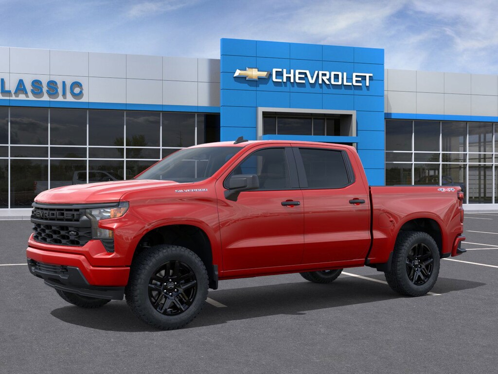 $6,422 off MSRP! Recent Arrival!2026 Chevrolet Silverado 1500 CustomRed Hot2.7L I4 Turbocharged DOHC 16V LEV3-SULEV30 310hp4WD8-Speed Automatic10-Way Power Driver Seat w/Lumbar, 120-Volt Bed Mounted Power Outlet, 120-Volt Interior Power Outlet, 3.5 Monochromatic Display Driver Info Center, All-Weather Floor Liner (LPO), Auto-Locking Rear Differential, Bluetooth® For Phone, Color-Keyed Carpeting Floor Covering, Custom Convenience Package, Custom Value Package, Deep-Tinted Glass, Dual Rear USB Ports (Charge Only), Electric Rear-Window Defogger, Electronic Cruise Control, EZ Lift Power Lock & Release Tailgate, Front Black Bowtie Emblem (LPO), Front Frame-Mounted Black Recovery Hooks, Front Rubberized Vinyl Floor Mats, HD Rear Vision Camera, High Capacity Suspension Package, Hitch Guidance, Integrated Trailer Brake Controller, LED Cargo Area Lighting, Manual Tilt Wheel Steering Column, Multi-Flex Tailgate, OnStar Services Capable, Power Front Windows w/Driver Express Up/Down, Power Front Windows w/Passenger Express Down, Power Rear Windows w/Express Down, Preferred Equipment Group 1CX, Rear 60/40 Folding Bench Seat (Folds Up), Rear Rubberized-Vinyl Floor Mats, Remote Keyless Entry, Remote Vehicle Starter System, SiriusXM Trial Subscription, Standard Tailgate, Teen Driver, Theft Deterrent System (Unauthorized Entry), Tire Pressure Monitoring System, Trailering Package, Wheels: 20 x 9 High Gloss Black Painted Alum, Wi-Fi Hot Spot Capable.Custom Convenience Package (Electric Rear-Window Defogger, EZ Lift Power Lock & Release Tailgate, LED Cargo Area Lighting, Remote Vehicle Starter System, and Theft Deterrent System (Unauthorized Entry)), Custom Value Package, High Capacity Suspension Package, Preferred Equipment Group 1CX (10-Way Power Driver Seat w/Lumbar, 120-Volt Bed Mounted Power Outlet, 120-Volt Interior Power Outlet, 3.5 Monochromatic Display Driver Info Center, Bluetooth® For Phone, Color-Keyed Carpeting Floor Covering, Deep-Tinted Glass, Dual Rear USB Ports (Charge Only), Electronic Cruise Control, Front Frame-Mounted Black Recovery Hooks, Front Rubberized Vinyl Floor Mats, HD Rear Vision Camera, Manual Tilt Wheel Steering Column, OnStar Services Capable, Power Front Windows w/Driver Express Up/Down, Power Front Windows w/Passenger Express Down, Power Rear Windows w/Express Down, Rear 60/40 Folding Bench Seat (Folds Up), Rear Rubberized-Vinyl Floor Mats, Remote Keyless Entry, SiriusXM Trial Subscription, Standard Tailgate, Teen Driver, Tire Pressure Monitoring System, and Wi-Fi Hot Spot Capable), Trailering Package (Hitch Guidance), All-Weather Floor Liner (LPO), Auto-Locking Rear Differential, Front Black Bowtie Emblem (LPO), Integrated Trailer Brake Controller, Multi-Flex Tailgate, Wheels: 20 x 9 High Gloss Black Painted Alum, 3.42 Rear Axle Ratio, 4-Wheel Disc Brakes, 40/20/40 Front Split-Bench Seat, 6 Speakers, 6-Speaker Audio System, ABS brakes, Air Conditioning, Alloy wheels, AM/FM radio: SiriusXM, Apple CarPlay/Android Auto, Auto High-beam Headlights, Automatic Emergency Braking, Brake assist, Bumpers: body-color, Cloth Seat Trim, Compass, Delay-off headlights, Driver door bin, Driver vanity mirror, Dual front impact airbags, Dual front side impact airbags, Electronic Stability Control, Emergency communication system: OnStar, Following Distance Indicator, Forward Collision Alert, Front anti-roll bar, Front Center Armrest w/Storage, Front Pedestrian Braking, Front reading lights, Front wheel independent suspension, Fully automatic headlights, Heated door mirrors, Illuminated entry, IntelliBeam Automatic High Beam On/Off, Lane Keep Assist w/Lane Departure Warning, Low tire pressure warning, Occupant sensing airbag, Outside temperature display, Overhead airbag, Overhead console, Panic alarm, Passenger door bin, Passenger vanity mirror, Power door mirrors, Power driver seat, Power steering, Power windows, Premium a Price includes: $1000 - Bonus Cash. Exp. 12/01/2025 $1750 - Customer Cas