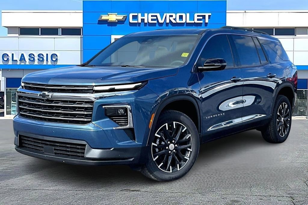 $3,204 off MSRP!2026 Chevrolet Traverse LTLakeshore Blue Metallic2.5L DOHCFWD8-Speed AutomaticBlack Bowtie, Driver Confidence Package, Evotex Seat Trim, HD Surround Vision, Key Card, Power Dual Glass Panoramic Sliding Sunroof, Power Outlet, Preferred Equipment Group 1LT, Rear Camera Mirror, Rear Pedestrian Alert, Sun and Wheel Package, Traffic Sign Recognition, Wheels: 20 Carbon Flash Metallic Aluminum.Driver Confidence Package (HD Surround Vision, Key Card, Power Outlet, Rear Camera Mirror, Rear Pedestrian Alert, and Traffic Sign Recognition), Preferred Equipment Group 1LT, Sun and Wheel Package (Power Dual Glass Panoramic Sliding Sunroof and Wheels: 20 Carbon Flash Metallic Aluminum), Black Bowtie, Evotex Seat Trim, 3rd row seats: split-bench, 4-Way Manual Front Passenger Seat Adjuster, 4-Wheel Disc Brakes, 6 Speakers, 6-Speaker Audio System Feature, 8-Way Power Driver Seat Adjuster, ABS brakes, Air Conditioning, Alloy wheels, AM/FM radio: SiriusXM with 360L, Apple CarPlay/Android Auto, Auto High-beam Headlights, Automatic temperature control, Brake assist, Bumpers: body-color, Child-Seat-Sensing Airbag, Compass, Delay-off headlights, Driver door bin, Driver vanity mirror, Dual front impact airbags, Dual front side impact airbags, Electronic Stability Control, Emergency communication system: OnStar, Four wheel independent suspension, Front anti-roll bar, Front Bucket Seats, Front Center Armrest, Front dual zone A/C, Front reading lights, Fully automatic headlights, Heated door mirrors, Heated Driver and Front Passenger Seats, Heated front seats, Heated steering wheel, Illuminated entry, Low tire pressure warning, Navigation System, Occupant sensing airbag, Outside temperature display, Overhead airbag, Overhead console, Panic alarm, Passenger door bin, Passenger vanity mirror, Power door mirrors, Power driver seat, Power Liftgate, Power steering, Power windows, Premium Cloth Seat Trim, Radio data system, Radio: : Audio System w/17.7 Diagonal Display, Rear air conditioning, Rear anti-roll bar, Rear reading lights, Rear window defroster, Rear window wiper, Remote keyless entry, Security system, SiriusXM with 360L Trial Subscription, Speed control, Speed-sensing steering, Spoiler, Steering wheel mounted audio controls, Tachometer, Telescoping steering wheel, Tilt steering wheel, Traction control, Trip computer, Turn signal indicator mirrors, Variably intermittent wipers, Voltmeter, and Wheels: 18 Grazen Metallic Machined-Face Aluminum.20/26 City/Highway MPG