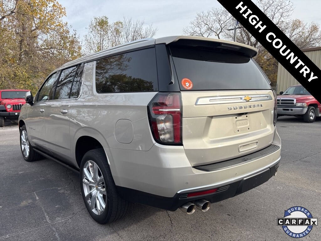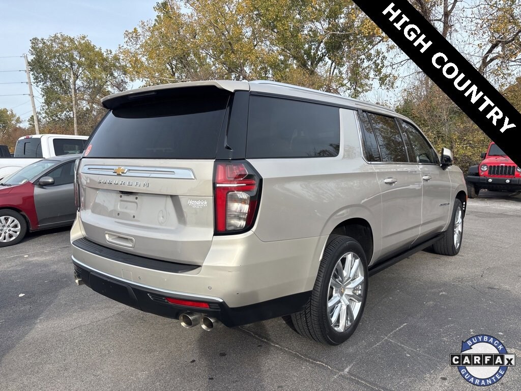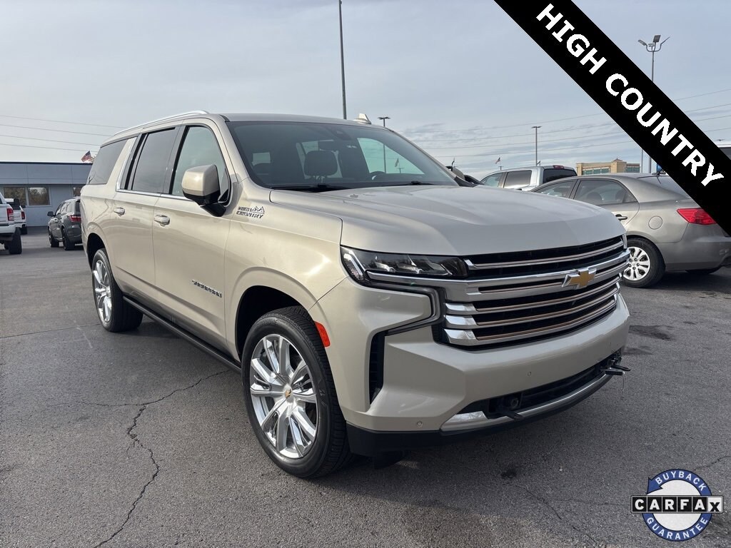 Recent Arrival! **4WD**, **AWD**, **BLUETOOTH**, **CLEAN CARFAX**, **HEATED & VENTILATED SEATS**, **HEATED SEATS**, **HID HEADLAMPS**, **LEATHER**, **LED HEADLIGHTS**, **LOCAL TRADE**, **NAVIGATION**, **REAR BACKUP CAMERA**, **REMOTE START**, **RUNNING BOARDS**, **TOW PACKAGE**. Preferred Equipment Group 3LZ (15 Diagonal Multi-Color Head-Up Display, 1st & 2nd Row Color-Keyed Carpeted Floor Mats, 2-Speed Active Electronic AutoTrac Transfer Case, 3rd Row 60/40 Power-Folding Split-Bench, Automatic Stop/Start, Bose 10-Speaker Surround w/CenterPoint, Bright Front & Rear Door Sill Plates, Chrome Door Handles w/Body-Color Strip, Color-Keyed Carpeting Floor Covering, Driver & Front Outboard Passenger Airbags, Dual Exhaust System, Enhanced Driver Information Center, Floor Console, Front & Rear Park Assist, Hands-Free Rear Power Programmable Liftgate, HD Surround Vision, Heated & Ventilated Driver & Front Passenger Seats, Heated 2nd Row Outboard Seats, Heated Driver & Front Passenger Seats, Heated Steering Wheel, Hill Descent Control, Infotainment Display, Inside Rearview Auto-Dimming Rear Camera Mirror, Lane Change Alert w/Side Blind Zone Alert, Leather-Wrapped Steering Wheel, LED Daytime Running Lamps, Memory Settings, Outside Heated Power-Adjustable Mirrors, Power Release 2nd Row Bucket Seats, Power Tilt & Telescopic Steering Column, Rear Camera Mirror Washer, Rear Cross Traffic Alert, Rear Pedestrian Alert, Remote Start, Safety Alert Seat, SiriusXM Radio w/360L, Start/Stop System Disable Button, Universal Home Remote, and Wireless Charging), 10 Speakers, 3.23 Rear Axle Ratio, 3rd row seats: split-bench, 4-Wheel Disc Brakes, ABS brakes, Adaptive suspension, Air Conditioning, Alloy wheels, AM/FM radio: SiriusXM with 360L, Apple CarPlay/Android Auto, Auto High-beam Headlights, Auto-dimming door mirrors, Auto-dimming Rear-View mirror, Auto-leveling suspension, Automatic temperature control, Brake assist, Bumpers: body-color, Compass, Delay-off headlights, Driver door bin, Driver vanity mirror, Dual front impact airbags, Dual front side impact airbags, Electronic Stability Control, Emergency communication system: OnStar and Chevrolet connected services capable, Four wheel independent suspension, Front anti-roll bar, Front Bucket Seats, Front Center Armrest, Front dual zone A/C, Front reading lights, Fully automatic headlights, Garage door transmitter, Heads-Up Display, Heated door mirrors, Heated front seats, Heated rear seats, Heated steering wheel, Illuminated entry, Leather steering wheel, Low tire pressure warning, Magnetic Ride Control Suspension, Memory seat, Navigation System, Not Equipped w/4-Way Driver & Fr Pass Pwr Lumbar, Not Equipped w/Steering Column Lock, Occupant sensing airbag, Outside temperature display, Overhead airbag, Overhead console, Panic alarm, Passenger door bin, Passenger vanity mirror, Perforated Leather Seating Surfaces, Power door mirrors, Power driver seat, Power Liftgate, Power passenger seat, Power steering, Power windows, Power-Retractable Assist Steps, Premium audio system: Chevrolet Infotainment 3 Premium, Radio: Chevrolet Infotainment 3 Premium System, Rain sensing wipers, Rear air conditioning, Rear anti-roll bar, Rear reading lights, Rear window defroster, Rear window wiper, Remote keyless entry, Roof rack: rails only, Security system, Speed control, Speed-sensing steering, Split folding rear seat, Spoiler, Steering wheel memory, Steering wheel mounted audio controls, Tachometer, Telescoping steering wheel, Tilt steering wheel, Traction control, Trip computer, Turn signal indicator mirrors, Variably intermittent wipers, Ventilated front seats, Voltmeter, Wheel Locks (Set of 4) (LPO), and Wheels: 22 x 9 Sterling Silver Premium Painted.2022 Chevrolet Suburban High Country 4WD 10-Speed Automatic with Overdrive EcoTec3 6.2L V8 Empire Beige Metallic