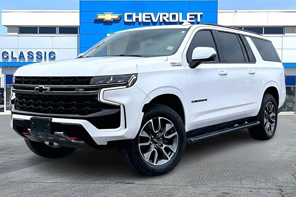 Recent Arrival! **1-OWNER**, **4WD**, **AWD**, **BLUETOOTH**, **CLEAN CARFAX 1-OWNER**, **CLEAN CARFAX**, **HEATED SEATS**, **HID HEADLAMPS**, **LEATHER**, **LOCAL TRADE**, **NAVIGATION**, **NON-SMOKER**, **REAR BACKUP CAMERA**, **REMOTE START**, **RUNNING BOARDS**, **TOW PACKAGE**. Advanced Trailering Package (Hitch Guidance w/Hitch View, Integrated Trailer Brake Controller, and Smart Trailer Integration Indicator), Driver Alert Package (Lane Change Alert w/Side Blind Zone Alert and Rear Cross Traffic Alert), License Plate Front Mounting Package, Luxury Package (2nd Row Pwr Release 60/40 Split-Folding Bench Seat, 3rd Row 60/40 Power-Folding Split-Bench, HD Surround Vision, Heated 2nd Row Outboard Seats, Heated Steering Wheel, Memory Settings, Outside Heated Power-Adjustable Mirrors, Power Tilt & Telescopic Steering Column, and Rear Pedestrian Alert), Max Trailering Package (Extra Capacity Cooling System), Off-Road Capability Package (Air Ride Adaptive Suspension, Electronic Limited Slip Differential, and Magnetic Ride Control Suspension), Preferred Equipment Group 2Z7 (10-Way Power Driver & Passenger Seat Adjusters, 1st & 2nd Row Color-Keyed Carpeted Floor Mats, 2-Speed Active Electronic AutoTrac Transfer Case, Auto-Dimming Inside Rear-View Mirror, Automatic Stop/Start, Black Tubular Assist Steps, Bose 9-Speaker Stereo Audio System Feature, Bright Front & Rear Door Sill Plates, Color-Keyed Carpeting Floor Covering, Driver & Front Outboard Passenger Airbags, Enhanced Driver Information Center, Floor Console w/Storage Area, Front & Rear Park Assist, Front High-Approach Angle Fascia, Hands-Free Rear Power Programmable Liftgate, Heated Driver & Front Passenger Seats, Hill Descent Control, Infotainment Display, Leather-Wrapped Steering Wheel, LED Daytime Running Lamps, Memory Settings For Driver, Red Recovery Hooks, Remote Start, SiriusXM Radio w/360L, Start/Stop System Disable Button, Universal Home Remote, and Wireless Charging), Z71 Off-Road Package, 3.23 Rear Axle Ratio, 3rd row seats: split-bench, 4-Wheel Disc Brakes, 9 Speakers, ABS brakes, Air Conditioning, Alloy wheels, AM/FM radio: SiriusXM with 360L, Apple CarPlay/Android Auto, Auto High-beam Headlights, Auto-dimming Rear-View mirror, Automatic temperature control, Brake assist, Bumpers: body-color, Compass, Delay-off headlights, Driver door bin, Driver vanity mirror, Dual front impact airbags, Dual front side impact airbags, Electronic Stability Control, Emergency communication system: OnStar and Chevrolet connected services capable, Four wheel independent suspension, Front anti-roll bar, Front Bucket Seats, Front Center Armrest, Front dual zone A/C, Front reading lights, Fully automatic headlights, Garage door transmitter, Heated door mirrors, Heated front seats, Illuminated entry, Leather steering wheel, Leather-Appointed Seating, Low tire pressure warning, Memory seat, Navigation System, Not Equipped w/Steering Column Lock, Occupant sensing airbag, Outside temperature display, Overhead airbag, Overhead console, Panic alarm, Passenger door bin, Passenger vanity mirror, Power door mirrors, Power driver seat, Power Liftgate, Power passenger seat, Power Release 2nd Row Bucket Seats, Power steering, Power windows, Premium audio system: Chevrolet Infotainment 3 Premium, Premium Smooth Ride Suspension, Radio: Chevrolet Infotainment 3 Premium System, Rain sensing wipers, Rear air conditioning, Rear anti-roll bar, Rear reading lights, Rear seat center armrest, Rear window defroster, Rear window wiper, Remote keyless entry, Roof rack: rails only, Security system, Speed control, Speed-sensing steering, Split folding rear seat, Spoiler, Steering wheel mounted audio controls, Tachometer, Telescoping steering wheel, Tilt steering wheel, Traction control, Trip computer, Variably intermittent wipers, Voltmeter, and Wheels: 20 x 9 Machined Aluminum.2022 Chevrolet Suburban Z71 4WD 10-Speed Automatic with Overdrive EcoTec3 5.3L V8 Summit White