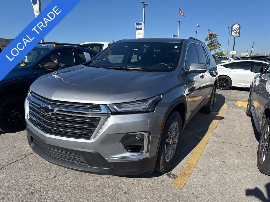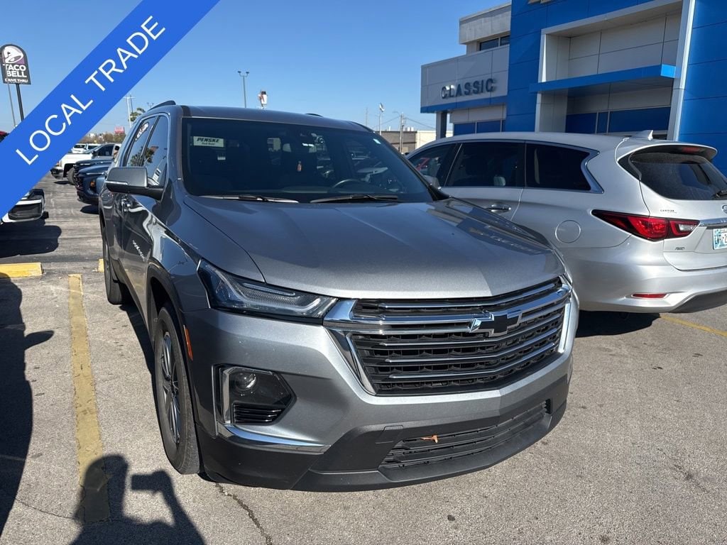 Recent Arrival! **1-OWNER**, **ANDROID CARPLAY**, **APPLE CARPLAY**, **BLUETOOTH**, **HEATED SEATS**, **KEYLESS ENTRY**, **LOCAL TRADE**, **REAR BACKUP CAMERA**, **USB PORT**. Floor Liner Package (LPO) (1st & 2nd Row All-Weather Floor Liner (LPO), 3rd Row All-Weather Floor Liner (LPO), and Integrated Cargo Liner (LPO)), Preferred Equipment Group 1LT, 2-Way Manual Front Passenger Seat Adjuster, 3.49 Axle Ratio, 3rd row seats: split-bench, 4-Wheel Disc Brakes, 6 Speakers, 6-Speaker Audio System Feature, 8-Way Power Driver Seat Adjuster, ABS brakes, Air Conditioning, Alloy wheels, AM/FM radio: SiriusXM, Apple CarPlay/Android Auto, Auto High-beam Headlights, Automatic temperature control, Black Bowtie, Black Roof Rails, Brake assist, Bumpers: body-color, Compass, Delay-off headlights, Driver door bin, Driver vanity mirror, Dual front impact airbags, Dual front side impact airbags, Electronic Stability Control, Emergency communication system, Exterior Parking Camera Rear, Four wheel independent suspension, Front anti-roll bar, Front Bucket Seats, Front Center Armrest, Front dual zone A/C, Front reading lights, Fully automatic headlights, Heated door mirrors, Illuminated entry, Leather steering wheel, Low tire pressure warning, Not Equipped w/Rear Park Assist (060), Occupant sensing airbag, Outside temperature display, Overhead airbag, Overhead console, Panic alarm, Passenger door bin, Passenger vanity mirror, Power door mirrors, Power Driver Lumbar Control, Power driver seat, Power steering, Power windows, Premium Cloth Seat Trim, Radio data system, Radio: Chevrolet Infotainment System AM/FM Stereo, Rear air conditioning, Rear anti-roll bar, Rear reading lights, Rear window defroster, Rear window wiper, Remote keyless entry, Security system, SiriusXM Radio, Speed control, Speed-sensing steering, Spoiler, Steering wheel mounted audio controls, Tachometer, Telescoping steering wheel, Tilt steering wheel, Traction control, Trip computer, Turn signal indicator mirrors, Variably intermittent wipers, Voltmeter, and Wheels: 18 Bright Silver-Painted Aluminum.2023 Chevrolet Traverse LT FWD 9-Speed Automatic 3.6L V6 SIDI VVT Sterling Gray Metallic18/27 City/Highway MPG