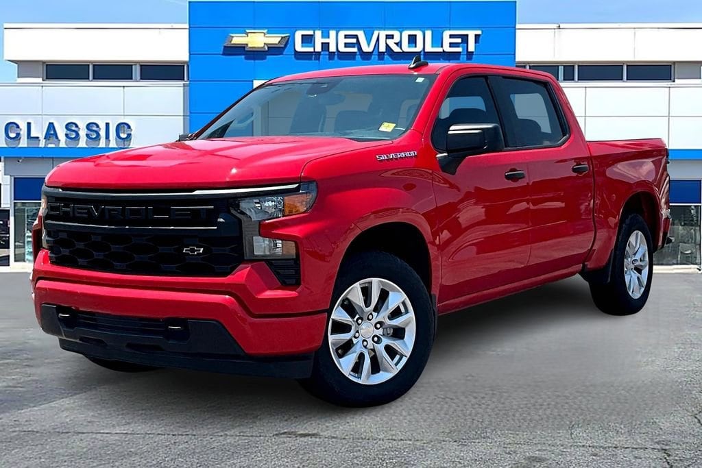 Recent Arrival! **1-OWNER**, **4WD**, **AWD**, **BLUETOOTH**, **CLEAN CARFAX 1-OWNER**, **CLEAN CARFAX**, **KEYLESS ENTRY**, **LOCAL TRADE**, **NON-SMOKER**, **REAR BACKUP CAMERA**. Custom Convenience Package (Electric Rear-Window Defogger, EZ Lift Power Lock & Release Tailgate, LED Cargo Area Lighting, Remote Vehicle Starter System, and Theft Deterrent System (Unauthorized Entry)), Custom Value Package, High Capacity Suspension Package, Preferred Equipment Group 1CX (10-Way Power Driver Seat w/Lumbar, 120-Volt Bed Mounted Power Outlet, 120-Volt Interior Power Outlet, 3.5 Monochromatic Display Driver Info Center, Bluetooth® For Phone, Chevrolet Connected Access Capable, Color-Keyed Carpeting Floor Covering, Deep-Tinted Glass, Dual Rear USB Ports (Charge Only), Electrical Steering Column Lock, Electronic Cruise Control, Front Frame-Mounted Black Recovery Hooks, Front Rubberized Vinyl Floor Mats, HD Rear Vision Camera, Manual Tilt Wheel Steering Column, OnStar & Chevrolet Connected Services Capable, Power Front Windows w/Driver Express Up/Down, Power Front Windows w/Passenger Express Down, Power Rear Windows w/Express Down, Rear 60/40 Folding Bench Seat (Folds Up), Rear Rubberized-Vinyl Floor Mats, Remote Keyless Entry, SiriusXM Radio, Standard Tailgate, and Wi-Fi Hot Spot Capable), Trailering Package (Hitch Guidance), 3.42 Rear Axle Ratio, 4-Wheel Disc Brakes, 40/20/40 Front Split-Bench Seat, 6 Speakers, 6-Speaker Audio System, ABS brakes, Air Conditioning, All-Weather Floor Liner (LPO), Alloy wheels, AM/FM radio: SiriusXM, Auto High-beam Headlights, Auto-Locking Rear Differential, Automatic Emergency Braking, Brake assist, Bumpers: body-color, Cloth Seat Trim, Compass, Delay-off headlights, Driver door bin, Driver vanity mirror, Dual front impact airbags, Dual front side impact airbags, Electronic Stability Control, Following Distance Indicator, Forward Collision Alert, Front anti-roll bar, Front Black Bowtie Emblem (LPO), Front Center Armrest w/Storage, Front Pedestrian Braking, Front reading lights, Front wheel independent suspension, Fully automatic headlights, Heated door mirrors, Illuminated entry, Integrated Trailer Brake Controller, IntelliBeam Automatic High Beam On/Off, Lane Keep Assist w/Lane Departure Warning, Low tire pressure warning, Multi-Flex Tailgate, Occupant sensing airbag, Outside temperature display, Overhead airbag, Overhead console, Panic alarm, Passenger door bin, Passenger vanity mirror, Power door mirrors, Power driver seat, Power steering, Power windows, Premium audio system: Chevrolet Infotainment 3, Radio data system, Radio: Chevrolet Infotainment 3 System, Rear reading lights, Rear step bumper, Rear window defroster, Remote keyless entry, Security system, Single Outlet Exhaust, Speed control, Speed-sensing steering, Split folding rear seat, Tachometer, Tilt steering wheel, Traction control, Trip computer, Variably intermittent wipers, Voltmeter, and Wheels: 20 x 9 Bright Silver Painted Aluminum. Odometer is 5311 miles below market average!2024 Chevrolet Silverado 1500 Custom 4WD 8-Speed Automatic 2.7L I4 Turbocharged DOHC 16V LEV3-SULEV30 310hp Red Hot