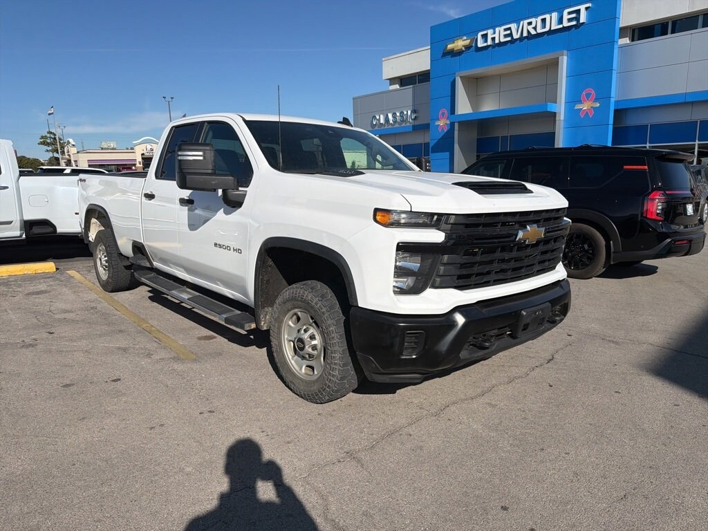Recent Arrival! **1-OWNER**, **4WD**, **AWD**, **BLUETOOTH**, **CLEAN CARFAX 1-OWNER**, **CLEAN CARFAX**, **KEYLESS ENTRY**, **LOCAL TRADE**, **NON-SMOKER**. Preferred Equipment Group 1WT (170 Amp Alternator, 2-Speed Electronic Shift Transfer Case, 3.5 Diagonal Monochromatic Display DIC, Black Front Bumper, Black Mirror Caps, Black Rear Bumper, Bluetooth® For Phone, Chevrolet Connected Access Capable, Compass, HD Rear Vision Camera, High-Visibility Vertical Trailering Mirrors, Locking Tailgate, Manual Tailgate Function w/No EZ Lift, Manual Tilt-Wheel Steering Column, OnStar & Chevrolet Connected Services Capable, Power Door Locks, Power Front Windows w/Driver Express Up/Down, Power Rear Windows w/Express Down, Push Button Start, Rear 60/40 Folding Bench Seat (Folds Up), Remote Keyless Entry, Rubberized-Vinyl Floor Covering, Solar Absorbing Tinted Glass, Standard Tailgate, Wi-Fi Hotspot Capable, and Wireless Phone Projection), Suspension Package, WT Convenience Package (Deep-Tinted Glass, Electric Rear-Window Defogger, Electronic Cruise Control w/Set & Resume Speed, EZ Lift Power Lock & Release Tailgate, and Heated Vertical Trailering Mirrors), 3.73 Rear Axle Ratio, 4-Wheel Disc Brakes, 6 Speakers, 6-Speaker Audio System, 720 Cold-Cranking Amps Heavy-Duty Battery, ABS brakes, Air Conditioning, AM/FM radio, Apple CarPlay/Android Auto, Auto High-beam Headlights, Brake assist, Delay-off headlights, Driver door bin, Dual front impact airbags, Dual front side impact airbags, Durabed Pickup Bed, Electronic Stability Control, Front 40/20/40 Split-Bench Seats w/Lockable Storage, Front anti-roll bar, Front Center Armrest w/Storage, Front reading lights, Front wheel independent suspension, Fully automatic headlights, Illuminated entry, Low tire pressure warning, Manual Tilt & Telescoping Steering Column, Occupant sensing airbag, Outside temperature display, Overhead airbag, Overhead console, Panic alarm, Passenger door bin, Passenger vanity mirror, Power steering, Power windows, Premium audio system: Chevrolet Infotainment 3, Radio: Chevrolet Infotainment 3 System, Rear reading lights, Rear step bumper, Remote keyless entry, Split folding rear seat, Tachometer, Tilt steering wheel, Traction control, Trip computer, Variably intermittent wipers, Vinyl Seat Trim, Voltmeter, and Wheels: 17 Silver Painted Steel.2024 Chevrolet Silverado 2500HD Work Truck 4WD 10-Speed Automatic 6.6L V8 Summit White