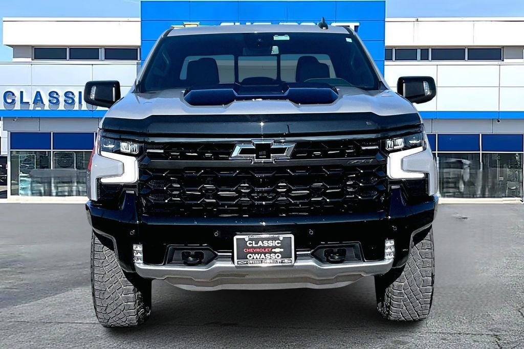**4WD**, **ANDROID CARPLAY**, **APPLE CARPLAY**, **AUTO HEADLIGHTS**, **BLUETOOTH**, **CLEAN CARFAX 1-OWNER**, **CLEAN CARFAX**, **HD RADIO**, **HEATED SEATS**, **KEYLESS ENTRY**, **LANE DEPARTURE WARNING**, **LEATHER**, **MOONROOF**, **REAR BACKUP CAMERA**, **REAR TRAFFIC ALERT**, **REMOTE START**, **TOW PACKAGE**, **USB PORT**. Dark Appearance Package (Front Frame-Mounted Black Recovery Hooks and Wheels: 18 x 8.5 Gloss Black), Preferred Equipment Group 3LT (10-Way Power Driver Seat w/Lumbar, 10-Way Power Passenger Seat Adjuster w/Lumbar, 12.3 Multicolor Reconfigurable Digital Display, 120-Volt Bed Mounted Power Outlet, 120-Volt Interior Power Outlet, 2 USB Data Ports, 2nd Row Heated Outboard Seats, All-Weather Floor Liner (LPO), Auto-Dimming Inside Rear-View Mirror, Bed View Camera, Bluetooth® For Phone, Chevytec Spray-On Black Bedliner, Color-Keyed Carpeting Floor Covering, Deep-Tinted Glass, Driver Memory, Dual Rear USB Ports (Charge Only), Electric Rear-Window Defogger, Electronic Cruise Control, EZ Lift Power Lock & Release Tailgate, Floor Mounted Center Console, Front LED Fog Lamps, Front Rain-Sensing Wipers, HD Surround Vision, Heated Driver & Front Outboard Passenger Seats, Heated Steering Wheel, Heavy-Duty Air Filter, High Gloss Black Mirror Caps, Hill Descent Control, Hitch Guidance w/Hitch View, In-Vehicle Trailering System App, Integrated Trailer Brake Controller, Keyless Open & Start, LED Cargo Area Lighting, Manual Tilt/Telescoping Steering Column, OnStar Services Capable, Outside Heated Power-Adjustable Mirrors, Performance Red Recovery Hooks, Perimeter Lighting, Power Front Passenger Windows w/Express Up/Down, Power Front Windows w/Driver Express Up/Down, Power Rear Windows w/Express Down, Power Sliding Rear Window w/Rear Defogger, Rear Cross Traffic Braking, Rear Pedestrian Alert, Rear Wheelhouse Liners, Remote Vehicle Starter System, Safety Alert Seat, SiriusXM w/360L Trial Subscription, Standard Tailgate, Steering Wheel Audio Controls, Teen Driver, Theft Deterrent System (Unauthorized Entry), Tire Pressure Monitoring System, Trailer Camera Provisions, Trailer Side Blind Zone Alert, Ultrasonic Front & Rear Park Assist, Universal Home Remote, Ventilated Driver & Front Passenger Seats, Wi-Fi Hot Spot Capable, and Wrapped Steering Wheel), Trailering Package (Hitch Guidance), Up-Level Rear Seat w/Storage Package, ZR2 Suspension Package, 220 Amp Alternator, 3.23 Rear Axle Ratio, 4-Wheel Disc Brakes, 7 Speakers, 850 Cold-Cranking Amps Heavy-Duty Battery, ABS brakes, Air Conditioning, Alloy wheels, AM/FM radio: SiriusXM with 360L, Apple CarPlay/Android Auto, Auto High-beam Headlights, Auto-dimming door mirrors, Auto-dimming Rear-View mirror, Automatic Emergency Braking, Automatic temperature control, Black Tailgate CHEVROLET Lettering (LPO), Block heater, Brake assist, Compass, Delay-off headlights, Driver door bin, Driver vanity mirror, Dual Exhaust, Dual front impact airbags, Dual front side impact airbags, Electronic Stability Control, Electronic Transmission Range Selector Shifter, Emergency communication system: OnStar, Engine Block Heater, Following Distance Indicator, Forward Collision Alert, Front anti-roll bar, Front Bucket Seats, Front Center Armrest, Front dual zone A/C, Front fog lights, Front License Plate Kit, Front Pedestrian Braking, Front reading lights, Front wheel independent suspension, Fully automatic headlights, Garage door transmitter, Heated door mirrors, Heated front seats, Heated rear seats, Heated steering wheel, Illuminated entry, IntelliBeam Automatic High Beam On/Off, Lane Keep Assist w/Lane Departure Warning, Low tire pressure warning, Memory seat, Occupant sensing airbag, Outside temperature display, Overhead airbag, Overhead console, Panic alarm, Passenger door bin, Passenger vanity mirror, Perforated Leather Seat Trim, Power door mirrors, Power driver seat, Power passenger seat, Power steering, Power Sunroof, Power windows, Premium