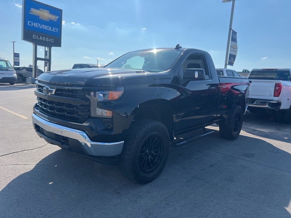 Recent Arrival! **1-OWNER**, **4WD**, **AWD**, **BLUETOOTH**, **CLEAN CARFAX 1-OWNER**, **CLEAN CARFAX**, **KEYLESS ENTRY**, **LOCAL TRADE**, **NON-SMOKER**, **REAR BACKUP CAMERA**. Dark Essentials Package (LPO) (Black Name Plates (LPO)), Preferred Equipment Group 1WT (3.5 Monochromatic Display Driver Info Center, 4-Way Manual Driver Seat Adjuster, Black (Semi-Gloss) Front Bumper, Black (Semi-Gloss) Rear Bumper, Bluetooth® For Phone, Electronic Cruise Control, Front Frame-Mounted Black Recovery Hooks, HD Rear Vision Camera, Heated Power-Adjustable Outside Mirrors, Inside Rear-View Mirror w/Tilt, Locking Tailgate, Manual Tailgate Function w/No EZ Lift, Manual Tilt Wheel Steering Column, OnStar Services Capable, Power Front Windows w/Driver Express Up/Down, Power Front Windows w/Passenger Express Down, Remote Keyless Entry, Rubberized-Vinyl Floor Covering, SiriusXM Delete, Solar Absorbing Tinted Glass, Standard Tailgate, Teen Driver, Tire Pressure Monitoring System, and Wi-Fi Hot Spot Capable), Standard Suspension Package, Trailering Package (Hitch Guidance), WT Convenience Package (Deep-Tinted Glass and Electric Rear-Window Defogger), WT Safety Package (Front Chrome Bumper, High Gloss Black Mirror Caps, Lane Change Alert w/Side Blind Zone Alert, Perimeter Lighting, Rear Chrome Bumper, Rear Cross Traffic Braking, Rear Pedestrian Alert, and Ultrasonic Front & Rear Park Assist), WT Value Package, 120-Volt Bed Mounted Power Outlet, 120-Volt Interior Power Outlet, 2 Speakers, 2-Speaker Audio System, 220 Amp Alternator, 3.42 Rear Axle Ratio, 4-Wheel Disc Brakes, 40/20/40 Front Split Bench Seat, ABS brakes, Air Conditioning, All-Weather Floor Liner (LPO), Apple CarPlay/Android Auto, Auto High-beam Headlights, Auto-Locking Rear Differential, Automatic Emergency Braking, Brake assist, Color-Keyed Carpeting Floor Covering, Compass, Delay-off headlights, Driver door bin, Dual front impact airbags, Dual front side impact airbags, Electronic Stability Control, Emergency communication system: OnStar, EZ Lift Power Lock & Release Tailgate, Following Distance Indicator, Forward Collision Alert, Front anti-roll bar, Front Black Bowtie Emblem (LPO), Front Center Armrest w/Storage, Front Pedestrian Braking, Front reading lights, Front Rubberized Vinyl Floor Mats, Front wheel independent suspension, Fully automatic headlights, Heated door mirrors, Illuminated entry, Integrated Trailer Brake Controller, IntelliBeam Automatic High Beam On/Off, Lane Keep Assist w/Lane Departure Warning, Low tire pressure warning, Multi-Flex Tailgate, Occupant sensing airbag, Outside temperature display, Overhead airbag, Overhead console, Panic alarm, Passenger door bin, Passenger vanity mirror, Power door mirrors, Power steering, Power windows, Premium audio system: Chevrolet Infotainment 3, Radio data system, Radio: Chevrolet Infotainment 3 System, Rear reading lights, Rear step bumper, Remote keyless entry, SiriusXM Trial Subscription, Speed control, Speed-sensing steering, Tachometer, Tilt steering wheel, Traction control, Trip computer, Variably intermittent wipers, Vinyl Seat Trim, Voltmeter, and Wheels: 17 x 8 Ultra Silver Painted Steel.2025 Chevrolet Silverado 1500 WT 4WD 8-Speed Automatic 2.7L I4 Turbocharged DOHC 16V LEV3-SULEV30 310hp Black