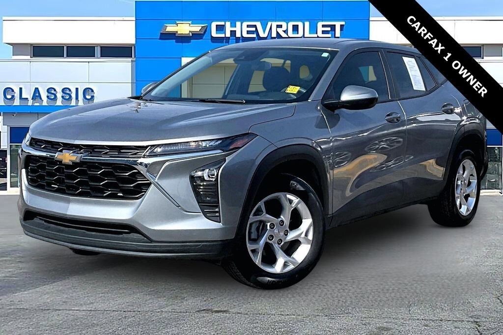 Recent Arrival! **ANDROID CARPLAY**, **APPLE CARPLAY**, **BLUETOOTH**, **CLEAN CARFAX 1-OWNER**, **CLEAN CARFAX**, **KEYLESS ENTRY**, **LOCAL TRADE**, **REAR BACKUP CAMERA**, **USB PORT**, Body-Color Painted Mirror Caps, Carpeted Rear Floor Mats, Driver Confidence Package, Heated Driver and Front Passenger Seats, Heated Power-Adjustable Outside Mirrors, Lane Change Alert with Side Blind Zone Alert, LS Convenience Package, Preferred Equipment Group 1LS, Rear Cross-Traffic Alert, Rear Park Assist, Remote Start, Wheels: 17 Silver Painted Aluminum. Driver Confidence Package (Lane Change Alert with Side Blind Zone Alert, Rear Cross-Traffic Alert, and Rear Park Assist), LS Convenience Package (Body-Color Painted Mirror Caps, Carpeted Rear Floor Mats, Heated Driver and Front Passenger Seats, Heated Power-Adjustable Outside Mirrors, Remote Start, and Wheels: 17 Silver Painted Aluminum), Preferred Equipment Group 1LS, 2-Way Adjustable Front Head Restraints, 3.50 Final Drive Axle Ratio, 4 Speakers, 4-Speaker Audio System Feature, 4-Way Manual Front Passenger Seat Adjuster, 4-Wheel Disc Brakes, 6-Way Manual Driver Seat Adjuster, ABS brakes, Air Conditioning, AM/FM radio: SiriusXM, Auto High-beam Headlights, Brake assist, Bumpers: body-color, Cloth Seat Trim, Compass, Delay-off headlights, Driver door bin, Driver vanity mirror, Dual front impact airbags, Dual front side impact airbags, Electronic Stability Control, Emergency communication system: OnStar One Essentials, Exterior Parking Camera Rear, Front anti-roll bar, Front Bucket Seats, Front Center Armrest, Front reading lights, Front wheel independent suspension, Fully automatic headlights, Illuminated entry, Low tire pressure warning, Occupant sensing airbag, Outside temperature display, Overhead airbag, Overhead console, Panic alarm, Passenger door bin, Passenger vanity mirror, Power door mirrors, Power steering, Power windows, Premium audio system: Chevrolet Infotainment 3, Radio data system, Radio: Chevrolet Infotainment 3 System with AM/FM, Rear window defroster, Rear window wiper, Remote keyless entry, Security system, SiriusXM Trial Subscription, Speed control, Split folding rear seat, Spoiler, Steering wheel mounted audio controls, Tachometer, Telescoping steering wheel, Tilt steering wheel, Traction control, Trip computer, Variably intermittent wipers, and Wheels: 17 Steel with Covers.2025 Chevrolet Trax LS FWD 6-Speed Automatic 1.2L Ecotec Turbo DOHC DI w/VVT Sterling Gray Metallic28/32 City/Highway MPGAwards:* Car and Driver 10 BestCar and Driver, January 2017.