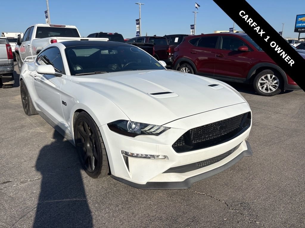 Recent Arrival! **ANDROID CARPLAY**, **APPLE CARPLAY**, **BLUETOOTH**, **CLEAN CARFAX 1-OWNER**, **CLEAN CARFAX**, **DAYTIME RUNNING LIGHTS**, **HEATED SEATS**, **KEYLESS ENTRY**, **REAR BACKUP CAMERA**, **USB PORT**. Equipment Group 300A, GT Performance Package (Engine Spun Aluminum Instrument Panel, Gauge Pack (Oil Pressure & Vacuum), HD Front Springs, Larger Brake Rotors, Larger Radiator, Unique Stability Control, and Wheels: 19 x 9 Fr & 19 x 9.5 Rr Ebony Black), 4-Wheel Disc Brakes, 6 Speakers, ABS brakes, Active Valve Performance Exhaust, Air Conditioning, Alloy wheels, AM/FM radio, AM/FM Stereo, Auto-dimming Rear-View mirror, Brake assist, Bumpers: body-color, Cloth Bucket Seats, Compass, Delay-off headlights, Driver door bin, Driver vanity mirror, Dual front impact airbags, Dual front side impact airbags, Electronic Stability Control, Emergency communication system: 911 Assist, Exterior Parking Camera Rear, Four wheel independent suspension, Front anti-roll bar, Front Bucket Seats, Front Center Armrest, Front fog lights, Front reading lights, Fully automatic headlights, Illuminated entry, Knee airbag, Low tire pressure warning, Occupant sensing airbag, Outside temperature display, Overhead airbag, Overhead console, Panic alarm, Passenger door bin, Passenger vanity mirror, Power door mirrors, Power driver seat, Power passenger seat, Power steering, Power windows, Radio data system, Rear anti-roll bar, Rear window defroster, Remote keyless entry, Security system, Speed control, Speed-sensing steering, Speed-Sensitive Wipers, Split folding rear seat, Spoiler, Steering wheel mounted audio controls, SYNC Communications & Entertainment System, Tachometer, Telescoping steering wheel, Tilt steering wheel, Traction control, Trip computer, Variably intermittent wipers, Voltmeter, and Wheels: 18 x 8 Machined-Face Aluminum.