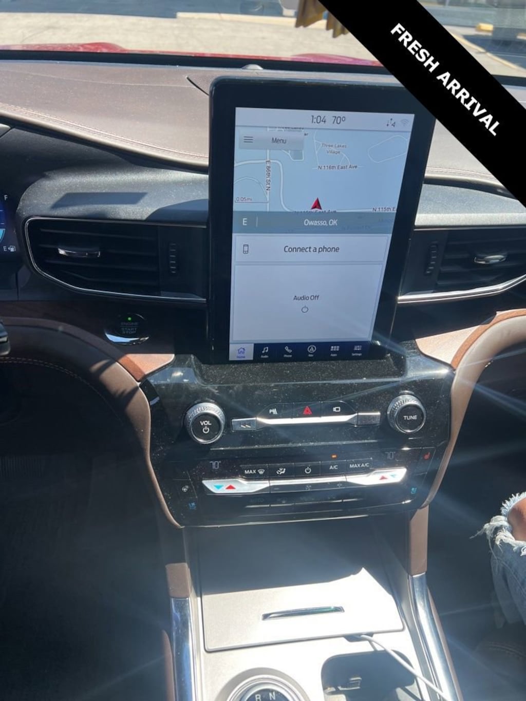 Recent Arrival! **4WD**, **ANDROID CARPLAY**, **APPLE CARPLAY**, **AUTO HEADLIGHTS**, **BLIND SPOT WARNING SYS**, **BLUETOOTH**, **CLEAN CARFAX**, **HEATED & VENTILATED SEATS**, **KEYLESS ENTRY**, **LANE DEPARTURE WARNING**, **LEATHER**, **MOONROOF**, **NAVIGATION**, **REAR BACKUP CAMERA**, **REMOTE START**, **USB PORT**. Equipment Group 701A, Premium Technology Package (10.1 LCD Capacitive Portrait Touchscreen, 2 Additional Speakers, and Mesa Del Rio Lthr Htd/Vent Capt's Chairs), 12 Speakers, 3.31 Non-Limited-Slip Axle Ratio, 3rd row seats: bench, 4-Wheel Disc Brakes, ABS brakes, Air Conditioning, Alloy wheels, AM/FM radio: SiriusXM, Auto High-beam Headlights, Auto-dimming door mirrors, Auto-dimming Rear-View mirror, Automatic temperature control, Brake assist, Bumpers: body-color, Compass, Delay-off headlights, Driver door bin, Driver vanity mirror, Dual front impact airbags, Dual front side impact airbags, Electronic Stability Control, Emergency communication system: SYNC 3 911 Assist, Exterior Parking Camera Rear, FordPass Connect, Four wheel independent suspension, Front & Second Row Floor Liners (16B), Front anti-roll bar, Front Bucket Seats, Front Center Armrest, Front dual zone A/C, Front fog lights, Front reading lights, Fully automatic headlights, Garage door transmitter: HomeLink, Genuine wood dashboard insert, Heated door mirrors, Heated front seats, Heated rear seats, Heated steering wheel, Illuminated entry, Knee airbag, Leather steering wheel, Low tire pressure warning, Memory seat, Navigation System, Occupant sensing airbag, Outside temperature display, Overhead airbag, Overhead console, Panic alarm, Passenger door bin, Passenger vanity mirror, Power door mirrors, Power driver seat, Power Liftgate, Power passenger seat, Power steering, Power windows, Radio data system, Radio: B&O Sound System by Bang & Olufsen, Rain sensing wipers, Rear air conditioning, Rear anti-roll bar, Rear reading lights, Rear window defroster, Rear window wiper, Remote keyless entry, Roof rack: rails only, Security system, SelectShift Capability w/Paddle Shifters, Speed control, Speed-sensing steering, Speed-Sensitive Wipers, Split folding rear seat, Spoiler, Steering wheel memory, Steering wheel mounted audio controls, SYNC 3 Communications & Entertainment System, SYNC 3/Apple CarPlay/Android Auto, Tachometer, Telescoping steering wheel, Tilt steering wheel, Traction control, Trip computer, Turn signal indicator mirrors, Twin Panel Moonroof, Variably intermittent wipers, Ventilated front seats, Voice-Activated Touchscreen Navigation System, and Wheels: 20 10-Spoke Aluminum w/KR Center Cap. Odometer is 35929 miles below market average!2021 Ford Explorer King Ranch 4WD 10-Speed Automatic 3.0L EcoBoost V6 Red Metallic