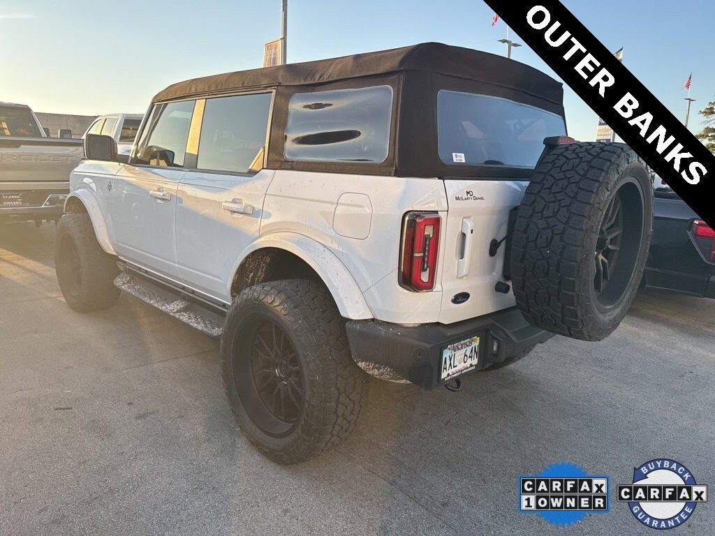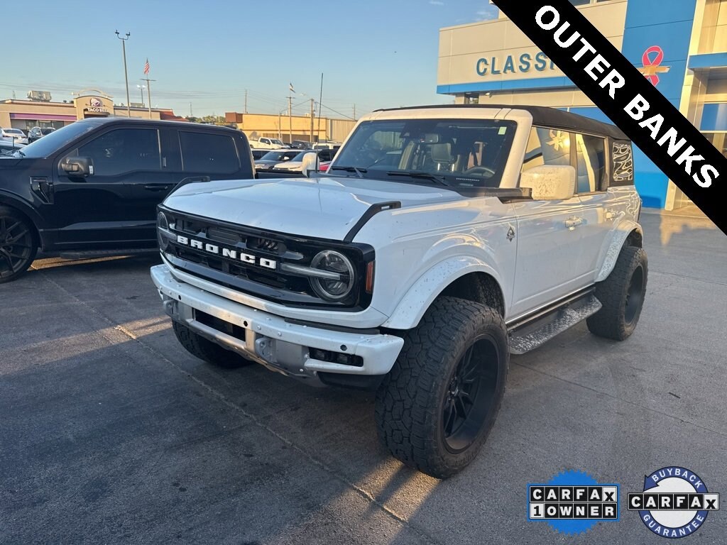 Recent Arrival! **1-OWNER**, **4WD**, **ANDROID CARPLAY**, **APPLE CARPLAY**, **AUTO HEADLIGHTS**, **CLEAN CARFAX 1-OWNER**, **CLEAN CARFAX**, **KEYLESS ENTRY**, **LEATHER**, **LOCAL TRADE**, **NAVIGATION**, **REAR BACKUP CAMERA**, **REMOTE START**, **USB PORT**. Equipment Group 312A Mid Package, 18 Bright Machined Aluminum Wheels, 3.73 Axle Ratio, 4-Wheel Disc Brakes, 7 Speakers, ABS brakes, Air Conditioning, Alloy wheels, AM/FM radio: SiriusXM with 360L, AM/FM Stereo, Auto High-beam Headlights, Auto-dimming Rear-View mirror, Automatic temperature control, Brake assist, Compass, Connected Navigation, Delay-off headlights, Driver door bin, Driver vanity mirror, Dual front impact airbags, Dual front side impact airbags, Electronic Stability Control, Emergency communication system: 911 Assist, Exterior Parking Camera Rear, Front anti-roll bar, Front Bucket Seats, Front Center Armrest, Front dual zone A/C, Front fog lights, Front reading lights, Front wheel independent suspension, Fully automatic headlights, Heated door mirrors, Heated front seats, Heated Leather-Trimmed/Vinyl Bucket Seats, Illuminated entry, Integrated roll-over protection, Leather Shift Knob, Low tire pressure warning, Navigation system: Connected Navigation, Occupant sensing airbag, Outside temperature display, Overhead airbag, Overhead console, Panic alarm, Passenger door bin, Passenger vanity mirror, Power door mirrors, Power driver seat, Power passenger seat, Power steering, Power windows, Radio data system, Radio: 7 Speakers w/Subwoofer, Rear seat center armrest, Remote keyless entry, Security system, SiriusXM Radio w/360L, Speed control, Split folding rear seat, Steering wheel mounted audio controls, SYNC 4, Tachometer, Telescoping steering wheel, Tilt steering wheel, Traction control, Trip computer, Variably intermittent wipers, and Voltmeter. Odometer is 4763 miles below market average!2024 Ford Bronco Outer Banks 4WD 10-Speed Automatic 2.7L EcoBoost V6 Oxford White