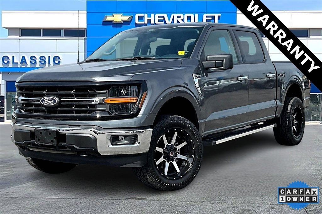 **4WD**, **ANDROID CARPLAY**, **APPLE CARPLAY**, **BLUETOOTH**, **CLEAN CARFAX 1-OWNER**, **CLEAN CARFAX**, **HD RADIO**, **HEATED SEATS**, **KEYLESS ENTRY**, **REAR BACKUP CAMERA**, **RUNNING BOARDS**, **TOW PACKAGE**, **USB PORT**. Equipment Group 301A Standard, 3.31 Axle Ratio, 4-Wheel Disc Brakes, 6 Speakers, ABS brakes, Air Conditioning, Alloy wheels, AM/FM radio: SiriusXM with 360L, Auto High-beam Headlights, Brake assist, Bumpers: chrome, Chrome wheels, Cloth 40/20/40 Front Seat, Compass, Delay-off headlights, Driver door bin, Driver vanity mirror, Dual front impact airbags, Dual front side impact airbags, Electronic Stability Control, Emergency communication system: SYNC 4 911 Assist, Front anti-roll bar, Front Center Armrest, Front fog lights, Front License Plate Bracket, Front reading lights, Front wheel independent suspension, Fully automatic headlights, Heated door mirrors, Illuminated entry, Low tire pressure warning, Occupant sensing airbag, Outside temperature display, Overhead airbag, Overhead console, Panic alarm, Passenger door bin, Passenger vanity mirror, Power door mirrors, Power steering, Power windows, Radio data system, Radio: AM/FM Stereo w/SiriusXM 360L, Rear Parking Sensors, Rear reading lights, Rear step bumper, Rear window defroster, Remote keyless entry, Security system, Speed control, Split folding rear seat, Steering wheel mounted audio controls, SYNC 4 w/Enhanced Voice Recognition, Tachometer, Telescoping steering wheel, Tilt steering wheel, Traction control, Trip computer, Variably intermittent wipers, Voltmeter, and Wheels: 18 Chrome-Like PVD. Odometer is 3748 miles below market average!2025 Ford F-150 XLT 4WD 10-Speed Automatic 3.5L V6 EcoBoost Gray Metallic