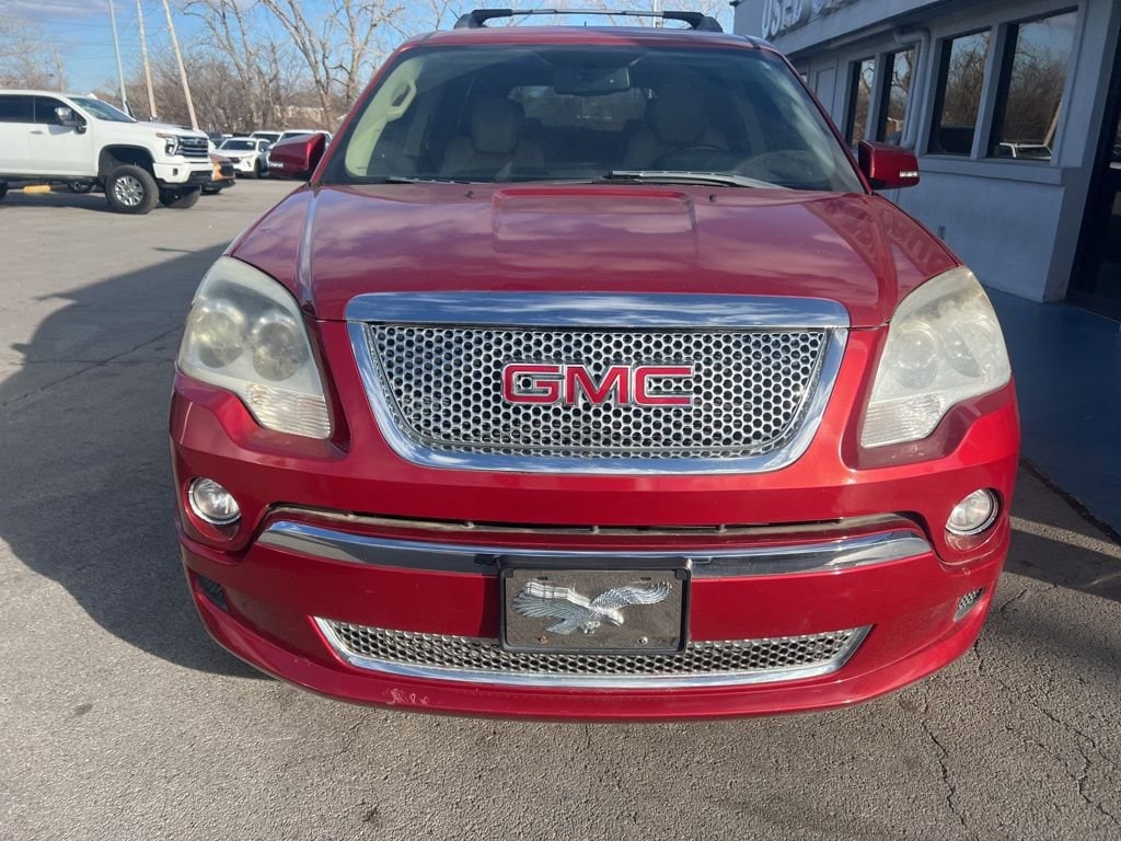Recent Arrival! **CLEAN CARFAX**, **HEATED SEATS**, **IN CAR WIFI SYSTEM**, **KEYLESS ENTRY**, **LEATHER**, **LOCAL TRADE**, **MOONROOF**, **REAR BACKUP CAMERA**, **USB PORT**. Denali Specific Acoustic Insulation Package, Preferred Equipment Group 5SA (2-Position Memory For Driver's Seat Adjuster, 4-Way Power Passenger Seat, 5-Gauge Instrumentation, 7-Passenger Seating (2-2-3 Seating Configuration), 8-Way Power Driver Seat, Bluetooth® For Phone, Body-Color Moldings w/Chrome Insert, Denali Specific Body-Color Rocker Molding, Denali Specific Double Dual Exhaust w/Chrome Tips, Denali Specific Front & Rear Body-Color Fascias, Denali Specific Illuminated Sill Plate, Digital Compass Display, Dual SkyScape 2-Panel Power Sunroof, Front & Rear Body-Color Wheel Flares, Heated & Cooled Front Seats, Heated Power-Adjustable Outside Mirrors, Inside Rear-View Auto-Dimming Mirror, Integral Spotter Blind-Zone Mirrors, Leather-Wrapped Steering Wheel w/Wood Trim, Power Rear Liftgate Body, Power Windows w/Driver Express-Up & -Down, Premium Carpeted Front 2nd & 3rd Row Floor Mats, Rear Audio System Controls, Rear Park Assist, Rear Vision Camera, Remote Vehicle Start, Tri-Zone Automatic Climate Control, Universal Home Remote, and Variable Effort Power Steering), Technology Package (Head-Up Display, High-Intensity Discharge Projector Low Beam Headlamps, and Rear Cargo Area Audio System Controls), Trailering Equipment (Heavy-Duty Cooling System and Trailer Hitch), 10 Speakers, 115-Volt 3-Prong Household-Style Power Outlet, 20 Chrome-Clad Aluminum Wheels, 3.16 Axle Ratio, 3rd row seats: split-bench, 4-Wheel Disc Brakes, ABS brakes, Air Conditioning, Alloy wheels, AM/FM radio: SiriusXM, AM/FM Stereo w/CD Player/MP3 Playback, Auto-dimming door mirrors, Auto-dimming Rear-View mirror, Automatic temperature control, Black Roof Rack Cross Bars, Bodyside moldings, Bose Advanced 10-Speaker Audio System, Bose Premium 10-Speaker Audio System, Brake assist, Bumpers: body-color, CD player, Compass, Delay-off headlights, Driver door bin, Driver vanity mirror, Dual front impact airbags, Dual front side impact airbags, Electronic Stability Control, Emergency communication system: OnStar Directions & Connections, Exterior Parking Camera Rear, Four wheel independent suspension, Front anti-roll bar, Front Bucket Seats, Front Center Armrest w/Storage, Front dual zone A/C, Front fog lights, Front License Plate Bracket, Front reading lights, Fully automatic headlights, Garage door transmitter, Genuine wood console insert, Genuine wood dashboard insert, Genuine wood door panel insert, Heads-Up Display, Heated door mirrors, Heated front seats, High-Intensity Discharge Headlights, Illuminated entry, Leather Shift Knob, Leather steering wheel, Low tire pressure warning, Memory seat, Occupant sensing airbag, Outside temperature display, Overhead airbag, Overhead console, Panic alarm, Passenger door bin, Passenger vanity mirror, Perforated Leather Seating Surfaces Seat Trim, Power door mirrors, Power driver seat, Power Liftgate, Power moonroof, Power passenger seat, Power steering, Power windows, Radio data system, Radio: AM/FM Stereo w/Rear Seat Entertainment, Rear air conditioning, Rear anti-roll bar, Rear audio controls, Rear reading lights, Rear Seat Entertainment System, Rear window defroster, Rear window wiper, Reclining Bucket Seats, Remote keyless entry, Ride & Handling Suspension, Roof rack: rails only, Security system, SIRIUSXM Satellite Radio, Speed control, Speed-sensing steering, Spoiler, Steering wheel mounted audio controls, Tachometer, Telescoping steering wheel, Tilt steering wheel, Traction control, Trip computer, Turn signal indicator mirrors, USB Port-Receptacle, Variably intermittent wipers, Ventilated front seats, and Voltmeter.2012 GMC Acadia Denali FWD 6-Speed Automatic Electronic with Overdrive 3.6L V6 SIDI Crystal Red TintcoatAwards:* 2012 IIHS Top Safety PickReviews:* If you need the kind of cargo and