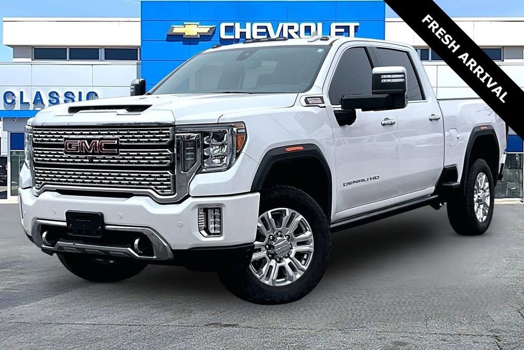 **4WD**, **ANDROID CARPLAY**, **APPLE CARPLAY**, **AUTO HEADLIGHTS**, **BLIND SPOT WARNING SYS**, **BLUETOOTH**, **HD RADIO**, **HEATED & VENTILATED SEATS**, **KEYLESS ENTRY**, **LANE DEPARTURE WARNING**, **LEATHER**, **LOCAL TRADE**, **MOONROOF**, **NAVIGATION**, **REAR BACKUP CAMERA**, **REMOTE START**, **TOW PACKAGE**, **USB PORT**. Denali Ultimate Package (Power Sunroof), Driver Alert Package I (Lane Change Alert w/Side Blind Zone Alert, Rear Cross Traffic Alert, and Ultrasonic Front & Rear Park Assist), Driver Alert Package II (Automatic Emergency Braking, Following Distance Indicator, Forward Collision Alert, IntelliBeam Automatic High Beam On/Off, and Lane Departure Warning System), Gooseneck/5th Wheel Prep Package, Heavy Duty Front Spring/Camper Package, Preferred Equipment Group 5SA (12-Volt Rear Auxiliary Power Outlet, 120-Volt Bed Mounted Power Outlet, 120-Volt Instrument Panel Power Outlet, 2 USB Ports, 2 USB Ports (1st Row), 2-Speed Active Transfer Case, 2nd Row Dual USB Charge-Only Ports, 4G LTE Wi-Fi Hotspot Capable, 6 Rectangular Chromed Tubular Assist Steps, Bed View Camera w/2 Trailer Camera Provisions, Chrome Recovery Hooks, Compass Located In Instrument Cluster, Deep-Tinted Glass, Electric Rear-Window Defogger, Electrical Lock Control Steering Column, Floor-Mounted Center Console, GMC Connected Access Capable, HD Surround Vision, Heated & Ventilated Front Bucket Seats, Heated 2nd Row Outboard Seats, Heated Driver & Front Outboard Passenger Seats, Integrated Trailer Brake Controller, Keyless Open & Start, LED Cargo Area Lighting, LED Smoked Amber Roof Marker Lamps, Manual Tilt-Wheel/Telescoping Steering Column, OnStar & GMC Connected Services Capable, Polished Exhaust Tip, Power Door Locks, Power Front Passenger Windows w/Express Up/Down, Power Rear Windows w/Express Down, Power Sliding Rear Window w/Defogger, Power Windows w/Driver Express Up/Down, Rear Wheelhouse Liners, Remote Vehicle Starter System, Safety Alert Seat, Signature Denali Grille, Spray-On Pickup Box Bed Liner w/Denali Logo, Steering Wheel Audio Controls, Unauthorized Entry Theft-Deterrent System, Universal Home Remote, Wireless Charging, and Wireless Phone Projection), Technology Package (Inside Rearview Auto-Dimming Rear Camera Mirror and Multicolor 15 Diagonal Head-Up Display), X31 Off-Road Package (Hill Descent Control), 10-Way Power Driver Seat Adjuster w/Lumbar, 10-Way Power Passenger Seat Adjuster w/Lumbar, 1st & 2nd Row All-Weather Floor Liner (LPO), 220 Amps Alternator, 4-Wheel Disc Brakes, 7 Speakers, ABS brakes, Air Conditioning, Alloy wheels, AM/FM radio: SiriusXM with 360L, Apple CarPlay/Android Auto, Auto High-beam Headlights, Auto-dimming door mirrors, Auto-dimming Rear-View mirror, Automatic temperature control, Bose Premium 7 Speaker Sound System, Brake assist, Bumpers: body-color, Compass, Delay-off headlights, Driver door bin, Driver Memory, Driver vanity mirror, Dual front impact airbags, Dual front side impact airbags, Electronic Stability Control, Engine Block Heater, Exhaust Brake, Exterior Parking Camera Rear, Forge Perforated Leather-Appointed Front Seat Trim, Front anti-roll bar, Front Bucket Seats, Front Center Armrest, Front dual zone A/C, Front fog lights, Front License Plate Kit, Front reading lights, Front wheel independent suspension, Fully automatic headlights, Garage door transmitter, Genuine wood console insert, Genuine wood door panel insert, HD Radio, Heated door mirrors, Heated front seats, Heated rear seats, Heated steering wheel, Heavy-Duty 80 Amp Battery, Hitch Guidance w/Hitch View, Illuminated entry, In-Vehicle Trailering System App, Low tire pressure warning, Memory seat, Navigation System, Occupant sensing airbag, Off-Road Suspension, Outside temperature display, Overhead airbag, Overhead console, Panic alarm, Passenger door bin, Passenger vanity mirror, Pickup Box, Power door mirrors, Power driver seat, Power passenger seat, Power Retractable Assist Steps, Power steering, Power windows, Premium