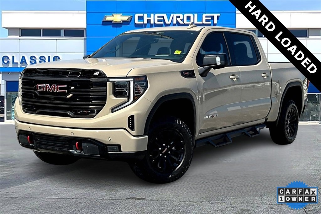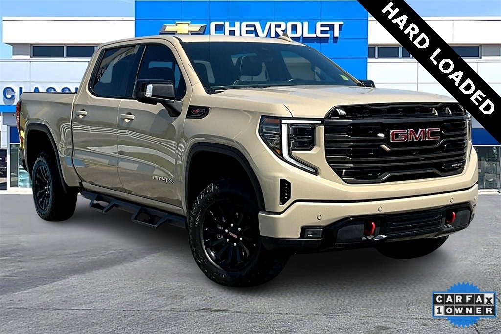 **1-OWNER**, **4WD**, **ANDROID CARPLAY**, **APPLE CARPLAY**, **AUTO HEADLIGHTS**, **BLIND SPOT WARNING SYS**, **BLUETOOTH**, **CLEAN CARFAX**, **HEATED & VENTILATED SEATS**, **KEYLESS ENTRY**, **LANE DEPARTURE WARNING**, **LEATHER**, **MOONROOF**, **NAVIGATION**, **REAR BACKUP CAMERA**, **RUNNING BOARDS**, **TOW PACKAGE**, **USB PORT**. Preferred Equipment Group 4SG (120-Volt Bed Mounted Power Outlet, 120-Volt Instrument Panel Power Outlet, 2 Charge/Data USB Ports Inside Center Console, 2 Type-C Charge-Only Rear USB Ports, 2 USB Ports, Bed View Camera, Bose Premium Series w/12-Speaker System, Color-Keyed Carpeting Floor Covering, Compass, Dark Nickel Header & Grille Insert Bars, Deep-Tinted Glass, Driver-Selectable Full-Locking Front Differential, Driver-Selectable Full-Locking Rear Differential, Electric Rear-Window Defogger, Electrical Steering Column Lock, Floor-Mounted Center Console, Front Prem Floor Liners w/Removable Carpet Insert, Front Rainsensing Wipers, GMC Connected Access Capable, HD Surround Vision, Heated 2nd Row Outboard Seats, Heated Driver & Front Outboard Passenger Seating, Heavy-Duty Air Filter, Hill Descent Control, Hitch Guidance w/Hitch View, In-Vehicle Trailering App, Integrated Trailer Brake Controller, Keyless Open & Start, LED Cargo Area Lighting, Multicolor 15 Diagonal Head-Up Display, MultiPro Audio System by Kicker (LPO), OnStar & GMC Connected Services Capable, Perimeter Lighting, Power Door Locks, Power Front Passenger Windows w/Express Up/Down, Power Front Windows w/Driver Express Up/Down, Power Rake & Telescoping Steering Column, Power Rear Windows w/Express Down, Power Sliding Rear Window w/Rear Defogger, Power Sunroof, Push Button Start, Rear Cross Traffic Braking, Rear Pedestrian Detection, Rear Prem Floor Liners w/Removable Carpet Insert, Rear Wheelhouse Liners, Red Recovery Hooks, Remote Vehicle Starter System, SiriusXM w/360L, Spray-On Pickup Bed Liner w/AT4X Logo, Steering Wheel Audio Controls, Theft Deterrent System (Unauthorized Entry), Trailer Camera Provisions, Trailer Side Blind Zone Alert, Trailer Tire Pressure Monitor System, Ultrasonic Front & Rear Park Assist, Universal Home Remote, Ventilated Driver & Front Passenger Seats, Wi-Fi Hotspot Capable, Wireless Charging, and Wireless Phone Projection), Trailering Package (Hitch Guidance), 12 Speakers, 16-Way Power Driver Seat Adjuster w/Lumbar, 16-Way Power Passenger Seat Adjuster w/Lumbar, 3.23 Rear Axle Ratio, 4-Wheel Disc Brakes, ABS brakes, Air Conditioning, Alloy wheels, AM/FM radio: SiriusXM with 360L, Apple CarPlay/Android Auto, Auto High-beam Headlights, Auto-dimming door mirrors, Auto-dimming Rear-View mirror, Automatic Emergency Braking, Automatic temperature control, Brake assist, Buckle to Drive, Bumpers: body-color, Delay-off headlights, Driver door bin, Driver Memory, Driver vanity mirror, Dual front impact airbags, Dual front side impact airbags, Electronic Stability Control, Emergency communication system: OnStar and GMC Connected Services capable, Following Distance Indicator, Forward Collision Alert, Front anti-roll bar, Front Bucket Seats, Front Center Armrest, Front dual zone A/C, Front fog lights, Front License Plate Kit, Front Pedestrian Braking, Front reading lights, Front wheel independent suspension, Full Grain Leather Seat Trim, Fully automatic headlights, Garage door transmitter, Genuine wood dashboard insert, Genuine wood door panel insert, Heads-Up Display, Heated door mirrors, Heated front seats, Heated rear seats, Heated steering wheel, Illuminated entry, IntelliBeam Automatic High Beam On/Off, Lane Keep Assist w/Lane Departure Warning, Low tire pressure warning, Memory seat, Navigation System, Not Equipped w/Steering Column Lock, Occupant sensing airbag, Off-Road Suspension, Outside temperature display, Overhead airbag, Overhead console, Panic alarm, Passenger door bin, Passenger vanity mirror, Power door mirrors, Power driver seat, Power moonroof, Po