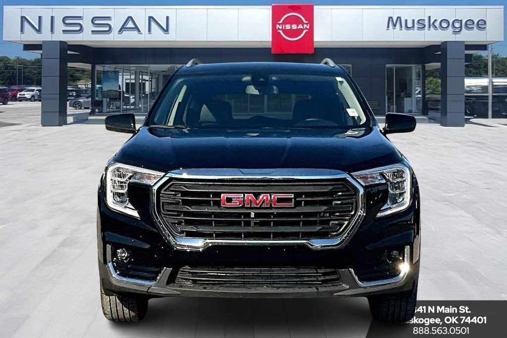 Recent Arrival! **ANDROID CARPLAY**, **APPLE CARPLAY**, **AWD**, **BLUETOOTH**, **HEATED SEATS**, **KEYLESS ENTRY**, **LEATHER**, **REAR BACKUP CAMERA**, **USB PORT**. Preferred Equipment Group 4SA, 2 USB Data Ports, 2 USB Data Ports w/SD Card Reader, 3.47 Final Drive Axle Ratio, 4-Wheel Disc Brakes, 6 Speakers, 6-Speaker Audio System Feature, 6-Way Power Front Passenger Seat, 8-Way Power Driver Seat Adjuster, ABS brakes, Air Conditioning, Alloy wheels, AM/FM radio: SiriusXM, Auto High-beam Headlights, Auto-dimming Rear-View mirror, Automatic temperature control, Bluetooth® For Phone, Brake assist, Bumpers: body-color, Compass, Delay-off headlights, Deleted 3 Years of Remote Access, Driver & Front Passenger Heated Seats, Driver door bin, Driver vanity mirror, Dual front impact airbags, Dual front side impact airbags, Electronic Stability Control, Emergency communication system: OnStar and GMC connected services capable, Four wheel independent suspension, Front anti-roll bar, Front Bucket Seats, Front Center Armrest, Front dual zone A/C, Front fog lights, Front Passenger 2-Way Power Lumbar, Front reading lights, Fully automatic headlights, Garage door transmitter, Heated door mirrors, Heated front seats, Heated steering wheel, Illuminated entry, Low tire pressure warning, Memory seat, Occupant sensing airbag, Outside temperature display, Overhead airbag, Overhead console, Panic alarm, Passenger door bin, Passenger vanity mirror, Perforated Leather-Appointed Seat Trim, Power door mirrors, Power Driver Lumbar Control, Power driver seat, Power Liftgate, Power passenger seat, Power steering, Power windows, Radio data system, Radio: GMC Infotainment Audio System w/8 Display, Rear anti-roll bar, Rear seat center armrest, Rear window defroster, Rear window wiper, Remote keyless entry, Roof rack: rails only, Security system, SiriusXM, Speed control, Speed-sensing steering, Split folding rear seat, Spoiler, Steering wheel mounted audio controls, Tachometer, Telescoping steering wheel, Tilt steering wheel, Traction control, Trip computer, Turn signal indicator mirrors, Variably intermittent wipers, Wheels: 18 x 7 Silver Painted Aluminum, and Wireless Apple CarPlay/Wireless Android Auto. Odometer is 19481 miles below market average!2024 GMC Terrain SLT AWD 9-Speed Automatic 1.5L DOHC Ebony Twilight Metallic23/28 City/Highway MPG