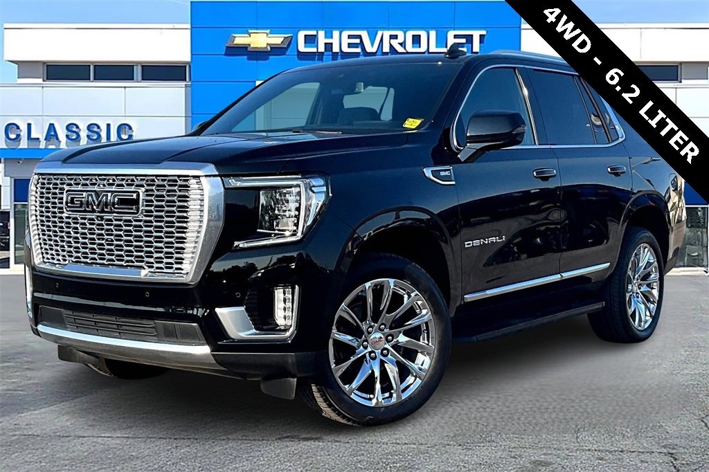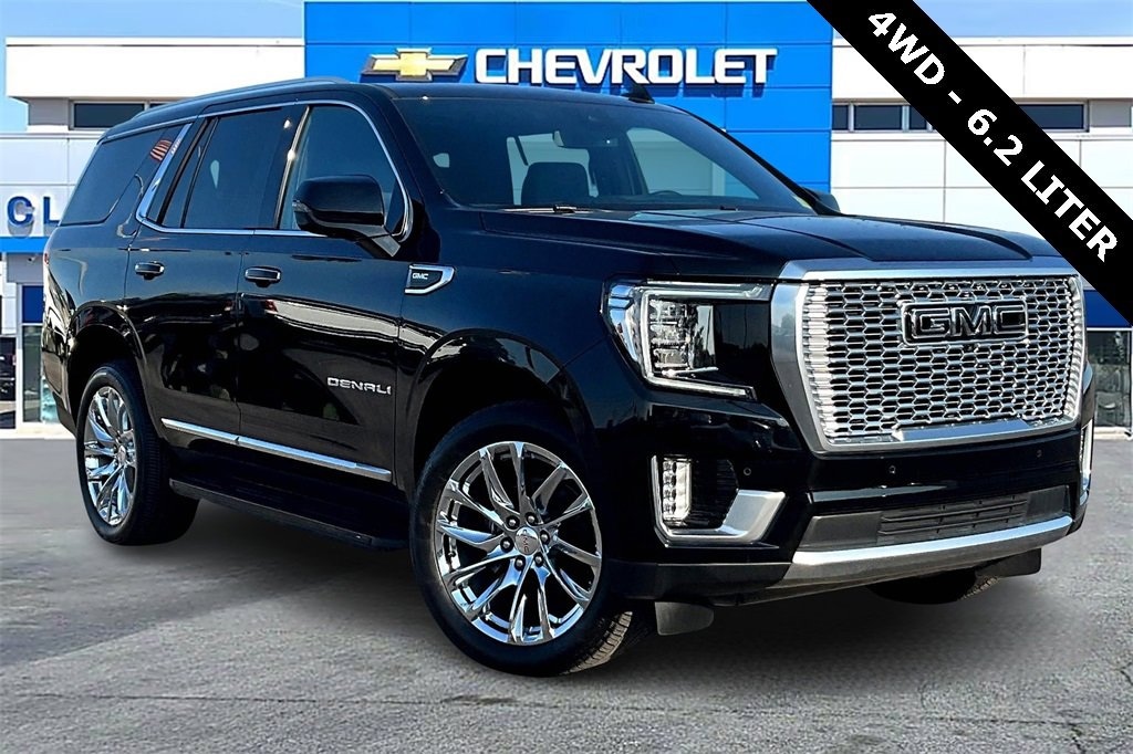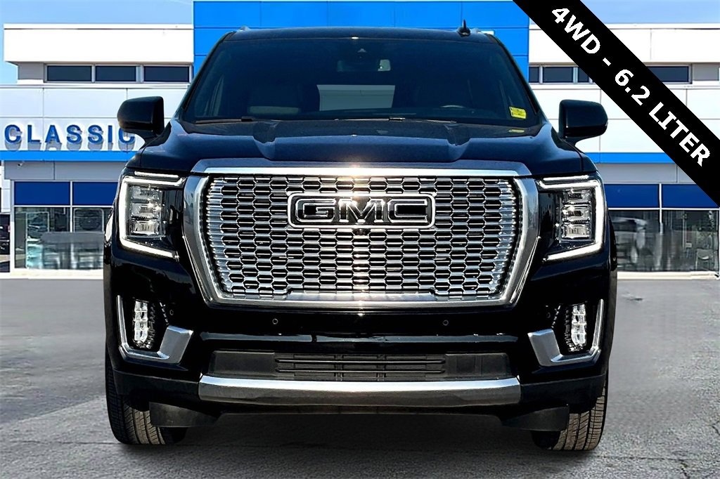 **4WD**, **ANDROID CARPLAY**, **APPLE CARPLAY**, **AUTO HEADLIGHTS**, **BLUETOOTH**, **CLEAN CARFAX**, **HD RADIO**, **HEATED SEATS**, **HID HEADLAMPS**, **KEYLESS ENTRY**, **LANE DEPARTURE WARNING**, **LEATHER**, **NAVIGATION**, **REAR BACKUP CAMERA**, **RUNNING BOARDS**, **TOW PACKAGE**, **USB PORT**. License Plate Front Mounting Package, Preferred Equipment Group 5SA (12-Way Power Seat Adjusters, 15 Diagonal Multi-Color Head-Up Display, 2 Presets For Outside Rearview Mirrors, 3rd Row 60/40 Power-Folding Split-Bench Seat, Adaptive Cruise Control, Bose 14-Speaker Surround w/CenterPoint, Bright Front & Rear Door Sill Plates, Chrome Door Handles w/Body-Color Strip, Dual Exhaust System, Enhanced Automatic Emergency Braking, Floor Console, Galvano Bodyside Moldings, Hands-Free Power Programmable Rear Liftgate, HD Surround Vision, Heated 2nd Row Outboard Position Seats, Heated Driver & Front Passenger Seats, Heated Steering Wheel, Hill Descent Control, Inside Rear-View Auto-Dimming Mirror, Outside Heated Power-Adjustable Mirrors, Perforated Heated & Ventilated Dr & Frt Pass Seats, Power Release 2nd Row Bucket Seats, Power Tilt & Telescopic Steering Column, Rear Pedestrian Alert, Safety Alert Seat, Universal Home Remote, and Wireless Charging), 14 Speakers, 3.23 Rear Axle Ratio, 3rd row seats: split-bench, 4-Wheel Disc Brakes, ABS brakes, Adaptive suspension, Air Conditioning, Alloy wheels, AM/FM radio: SiriusXM with 360L, AM/FM Stereo, Apple CarPlay/Android Auto, Auto High-beam Headlights, Auto-dimming door mirrors, Auto-dimming Rear-View mirror, Auto-leveling suspension, Automatic Emergency Braking, Automatic temperature control, Bodyside moldings, Brake assist, Bumpers: body-color, Compass, Delay-off headlights, Driver door bin, Driver vanity mirror, Dual front impact airbags, Dual front side impact airbags, Dual-Pane Panoramic Power Sunroof, Electronic Stability Control, Emergency communication system: OnStar and GMC connected services capable, Following Distance Indicator, Forward Collision Alert, Four wheel independent suspension, Front & Rear Park Assist, Front anti-roll bar, Front Bucket Seats, Front Center Armrest, Front dual zone A/C, Front fog lights, Front Pedestrian Braking, Front reading lights, Fully automatic headlights, Garage door transmitter, Heads-Up Display, Heated door mirrors, Heated front seats, Heated rear seats, Heated steering wheel, Illuminated entry, IntelliBeam Automatic High Beam On/Off, Lane Change Alert w/Side Blind Zone Alert, Lane Keep Assist w/Lane Departure Warning, Low tire pressure warning, Magnetic Ride Control Suspension, Memory seat, Navigation System, Occupant sensing airbag, Outside temperature display, Overhead airbag, Overhead console, Panic alarm, Passenger door bin, Passenger vanity mirror, Perforated Leather Seating Surfaces, Power door mirrors, Power driver seat, Power Liftgate, Power passenger seat, Power steering, Power windows, Rain sensing wipers, Rear air conditioning, Rear anti-roll bar, Rear Cross Traffic Alert, Rear reading lights, Rear window defroster, Rear window wiper, Remote keyless entry, Roof rack: rails only, Security system, SiriusXM w/360L, Speed control, Speed-sensing steering, Split folding rear seat, Spoiler, Steering wheel memory, Steering wheel mounted audio controls, Tachometer, Telescoping steering wheel, Tilt steering wheel, Traction control, Trip computer, Turn signal indicator mirrors, Variably intermittent wipers, Ventilated front seats, Voltmeter, and Wheels: 20 x 9 6-Spoke Polished Aluminum. Odometer is 4019 miles below market average!