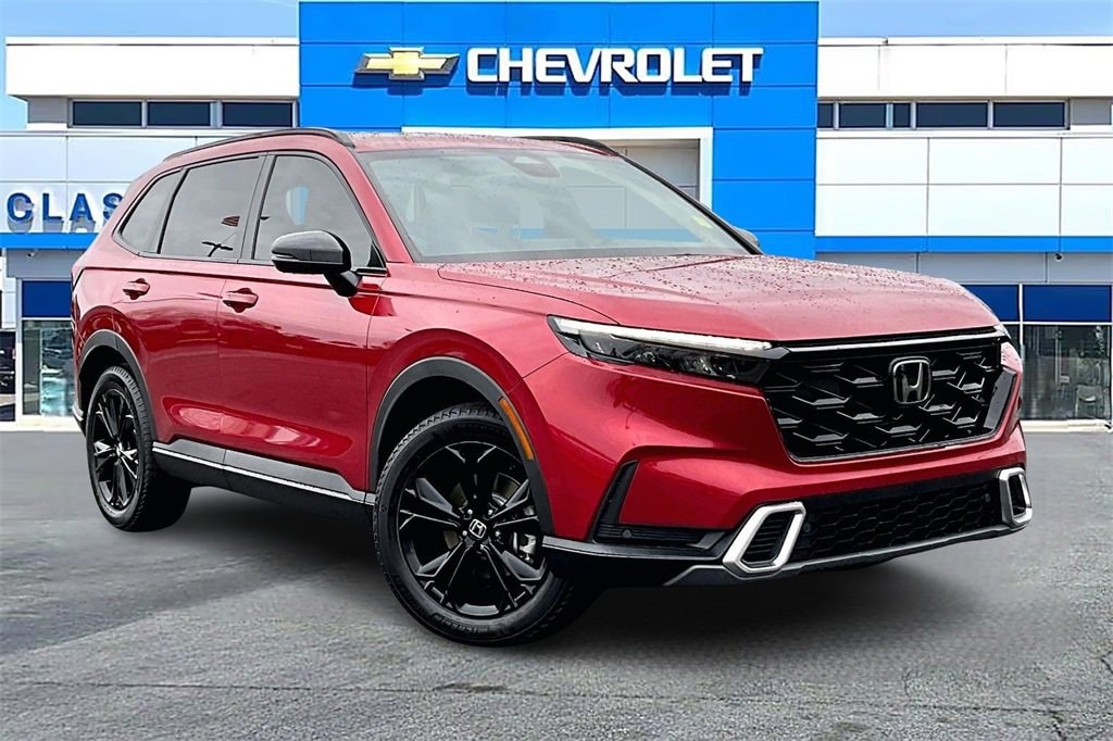 Recent Arrival! **1-OWNER**, **AWD**, **BLUETOOTH**, **CLEAN CARFAX 1-OWNER**, **CLEAN CARFAX**, **HEATED SEATS**, **HID HEADLAMPS**, **LEATHER**, **LOCAL TRADE**, **NON-SMOKER**, **REAR BACKUP CAMERA**, **REMOTE START**. 12 Speakers, 4-Wheel Disc Brakes, ABS brakes, Adaptive Cruise Control: Adaptive Cruise Control (ACC) with Low-Speed Follow, Air Conditioning, Alloy wheels, Apple CarPlay/Android Auto, Auto High-beam Headlights, Auto-dimming Rear-View mirror, Automatic temperature control, Blind Spot Information (BSI) System warning, Bose Premium Sound System, Brake assist, Bumpers: body-color, Compass, Delay-off headlights, Driver door bin, Driver vanity mirror, Dual front impact airbags, Dual front side impact airbags, Electronic Stability Control, Exterior Parking Camera Rear, Four wheel independent suspension, Front anti-roll bar, Front Bucket Seats, Front Center Armrest, Front dual zone A/C, Front reading lights, Fully automatic headlights, Heated door mirrors, Heated Front Bucket Seats, Heated front seats, Heated steering wheel, Illuminated entry, Knee airbag, Leather Seat Trim, Leather Shift Knob, Leather steering wheel, Low tire pressure warning, Memory seat, Navigation system: Google Maps, Occupant sensing airbag, Outside temperature display, Overhead airbag, Overhead console, Panic alarm, Passenger door bin, Passenger vanity mirror, Power door mirrors, Power driver seat, Power Liftgate, Power moonroof, Power passenger seat, Power steering, Power windows, Radio data system, Rain sensing wipers, Rear anti-roll bar, Rear reading lights, Rear seat center armrest, Rear side impact airbag, Rear window defroster, Rear window wiper, Remote keyless entry, Security system, Speed control, Speed-sensing steering, Speed-Sensitive Wipers, Split folding rear seat, Spoiler, Steering wheel mounted audio controls, Telescoping steering wheel, Tilt steering wheel, Traction control, Trip computer, Turn signal indicator mirrors, Variably intermittent wipers, and Wheels: 19 Berlina Black.2026 Honda CR-V Hybrid Sport Touring AWD eCVT 2.0L I4 DOHC 16V Red40/34 City/Highway MPG