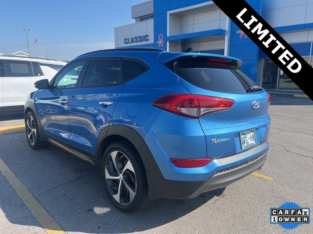 Recent Arrival! **1-OWNER**, **BLUETOOTH**, **HEATED SEATS**, **KEYLESS ENTRY**, **LEATHER**, **LOCAL TRADE**, **REAR BACKUP CAMERA**, **USB PORT**. Limited Ultimate Package 03 (4.2-Inch Color LCD Electroluminescent Cluster, Automatic Emergency Braking (AEB), Front & Rear LED Maplights, Heated Rear Seats, High-Intensity Discharge Headlights, Lane Departure Warning System, Panoramic Sunroof, Rear Parking Sensors, and Ventilated Front Bucket Seats), Option Group 03, 3.579 Axle Ratio, 4-Wheel Disc Brakes, 8 Speakers, ABS brakes, Air Conditioning, Alloy wheels, AM/FM radio: SiriusXM, Anti-whiplash front head restraints, Auto-dimming Rear-View mirror, Automatic temperature control, Brake assist, Bumpers: body-color, Cargo Net, Carpeted Floor Mats, Compass, Delay-off headlights, Driver door bin, Driver vanity mirror, Dual front impact airbags, Dual front side impact airbags, Electronic Stability Control, Emergency communication system: Blue Link, Exterior Parking Camera Rear, First Aid Kit, Four wheel independent suspension, Front anti-roll bar, Front Bucket Seats, Front Center Armrest, Front dual zone A/C, Front fog lights, Front reading lights, Fully automatic headlights, Garage door transmitter: HomeLink, Heated door mirrors, Heated Front Bucket Seats w/Power Driver, Heated front seats, Illuminated entry, Leather Seat Trim, Leather Shift Knob, Low tire pressure warning, Mudguards, Occupant sensing airbag, Outside temperature display, Overhead airbag, Overhead console, Panic alarm, Passenger door bin, Passenger vanity mirror, Power door mirrors, Power driver seat, Power Liftgate, Power passenger seat, Power steering, Power windows, Radio: Autonet AM/FM/HD Radio/MP3 Audio System, Rear anti-roll bar, Rear Bumper Applique, Rear Cargo Tray, Rear seat center armrest, Rear window defroster, Rear window wiper, Remote keyless entry, Roof rack: rails only, Security system, Speed control, Speed-sensing steering, Split folding rear seat, Spoiler, Steering wheel mounted audio controls, Tachometer, Telescoping steering wheel, Tilt steering wheel, Traction control, Trip computer, Turn signal indicator mirrors, Variably intermittent wipers, Wheel Locks, and Wheels: 19 x 7.5J Alloys.2016 Hyundai Tucson Limited FWD 7-Speed Automatic 1.6L I4 DGI Turbocharged DOHC 16V ULEV II 175hp Caribbean Blue25/30 City/Highway MPGAwards:* 2016 KBB.com 10 Best All-Wheel Drive Vehicles Under $25,000 * 2016 KBB.com Best Buy Awards Finalist * 2016 KBB.com 10 Best SUVs Under $25,000 * 2016 KBB.com 5-Year Cost to Own AwardsReviews:* Turbocharged engine delivers peppy acceleration and good fuel economy; plenty of advanced safety and infotainment features are available; comfortable ride on rough roads. Source: Edmunds