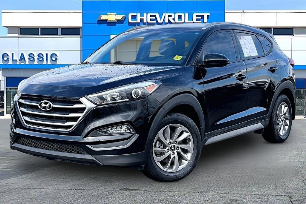 Recent Arrival! **ANDROID CARPLAY**, **APPLE CARPLAY**, **AUTO HEADLIGHTS**, **BLUETOOTH**, **CLEAN CARFAX**, **HEATED SEATS**, **KEYLESS ENTRY**, **REAR BACKUP CAMERA**, **REMOTE START**, **TOW PACKAGE**, Option Group 01. Option Group 01, 17 x 7.0J Alloy Wheels, 4-Wheel Disc Brakes, 6 Speakers, ABS brakes, Air Conditioning, Alloy wheels, AM/FM radio: SiriusXM, Apple CarPlay & Android Auto, Axle Ratio: 3.51, Brake assist, Bumpers: body-color, Cargo Cover, Cargo Net, Carpeted Floor Mats, Delay-off headlights, Driver door bin, Driver vanity mirror, Dual front impact airbags, Dual front side impact airbags, Electronic Stability Control, Exterior Parking Camera Rear, First Aid Kit, Four wheel independent suspension, Front anti-roll bar, Front Bucket Seats, Front Center Armrest, Front fog lights, Front reading lights, Fully automatic headlights, Heated door mirrors, Heated Front Bucket Seats, Heated front seats, Illuminated entry, Low tire pressure warning, Mudguards, Occupant sensing airbag, Outside temperature display, Overhead airbag, Overhead console, Panic alarm, Passenger door bin, Passenger vanity mirror, Power door mirrors, Power driver seat, Power steering, Power windows, Radio: AM/FM/HD Radio/MP3 Audio System, Rear anti-roll bar, Rear seat center armrest, Rear window defroster, Rear window wiper, Remote keyless entry, Roof rack: rails only, Security system, Speed control, Speed-sensing steering, Split folding rear seat, Spoiler, Steering wheel mounted audio controls, Tachometer, Telescoping steering wheel, Tilt steering wheel, Traction control, Trip computer, Variably intermittent wipers, and YES Essentials Cloth Seat Trim. Odometer is 32828 miles below market average!2018 Hyundai Tucson SEL FWD 6-Speed Automatic with Shiftronic 2.0L DOHC Black Noir Pearl23/30 City/Highway MPGAwards:* 2018 KBB.com 10 Best SUVs Under $25,000 * 2018 KBB.com 10 Most Awarded Brands * 2018 KBB.com 5-Year Cost to Own Awards