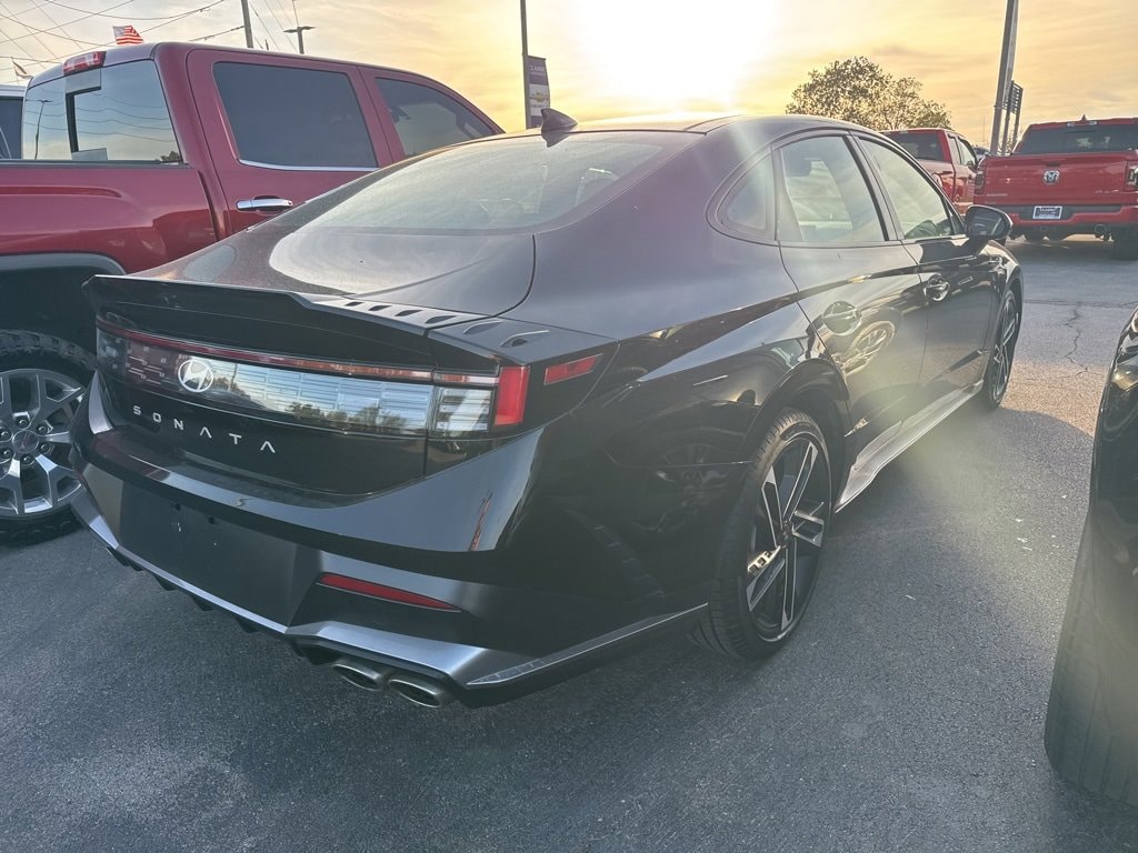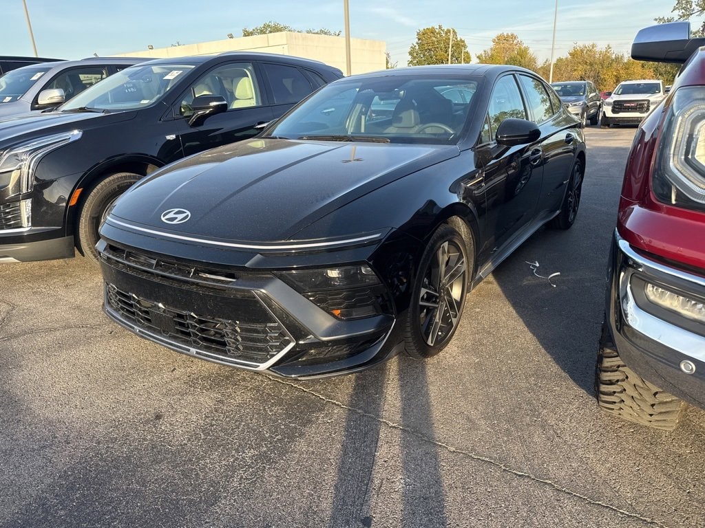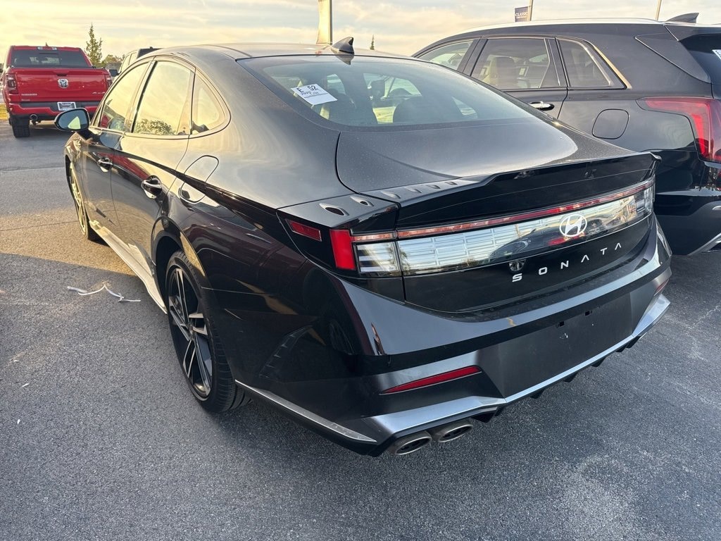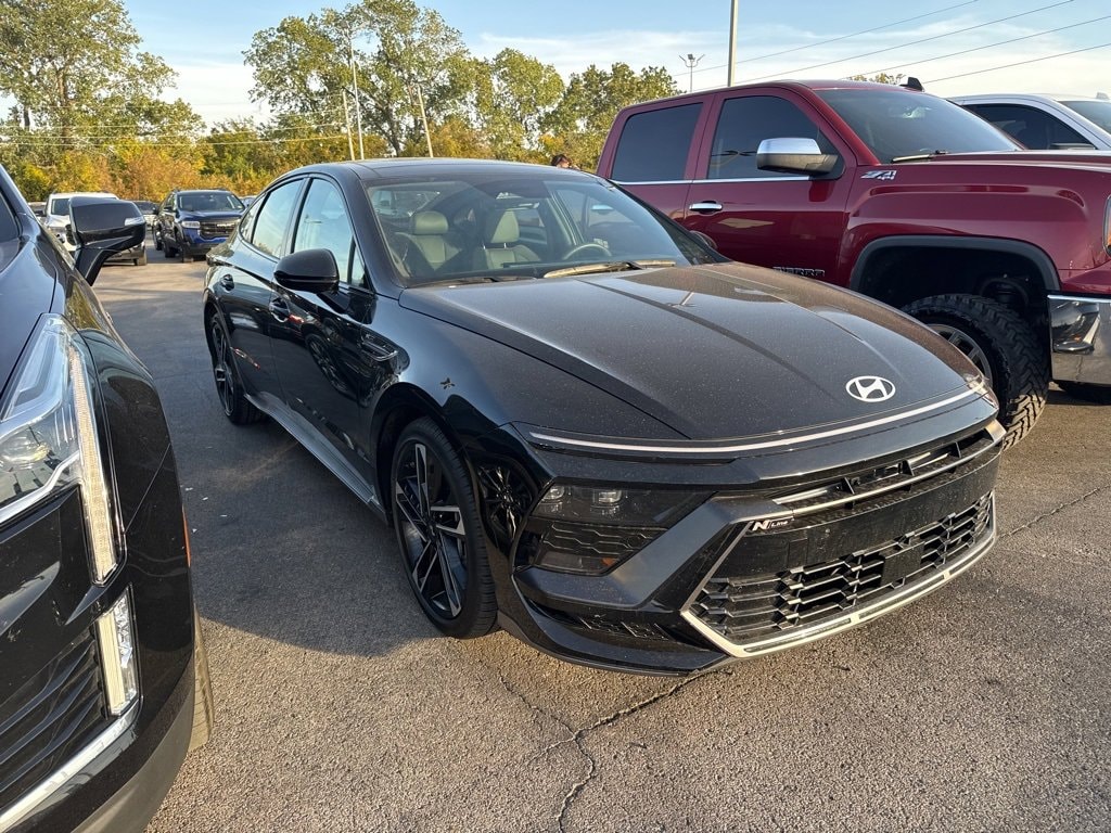 Recent Arrival! **1-OWNER**, **BLUETOOTH**, **CLEAN CARFAX 1-OWNER**, **CLEAN CARFAX**, **KEYLESS ENTRY**, **LOCAL TRADE**, **NON-SMOKER**, **REAR BACKUP CAMERA**. 12 Speakers, 4-Wheel Disc Brakes, ABS brakes, Air Conditioning, Alloy wheels, AM/FM radio: SiriusXM, Apple CarPlay & Android Auto, Auto High-beam Headlights, Auto-dimming Rear-View mirror, Automatic temperature control, Brake assist, Delay-off headlights, Driver door bin, Driver vanity mirror, Dual front impact airbags, Dual front side impact airbags, Electronic Stability Control, Exterior Parking Camera Rear, Four wheel independent suspension, Front anti-roll bar, Front Bucket Seats, Front dual zone A/C, Front reading lights, Fully automatic headlights, Heated door mirrors, Heated front seats, Illuminated entry, Knee airbag, Leather steering wheel, Low tire pressure warning, Navigation System, Occupant sensing airbag, Outside temperature display, Overhead airbag, Overhead console, Panic alarm, Passenger door bin, Passenger vanity mirror, Power door mirrors, Power driver seat, Power moonroof, Power steering, Power windows, Radio data system, Rear anti-roll bar, Rear side impact airbag, Rear window defroster, Remote keyless entry, Security system, Speed control, Speed-sensing steering, Speed-Sensitive Wipers, Split folding rear seat, Spoiler, Steering wheel mounted audio controls, Tachometer, Telescoping steering wheel, Tilt steering wheel, Traction control, Trip computer, and Variably intermittent wipers. Odometer is 4885 miles below market average!2025 Hyundai Sonata N Line FWD 8-Speed I4 Abyss Black23/32 City/Highway MPG