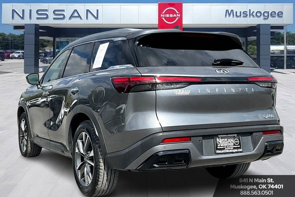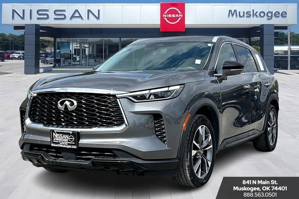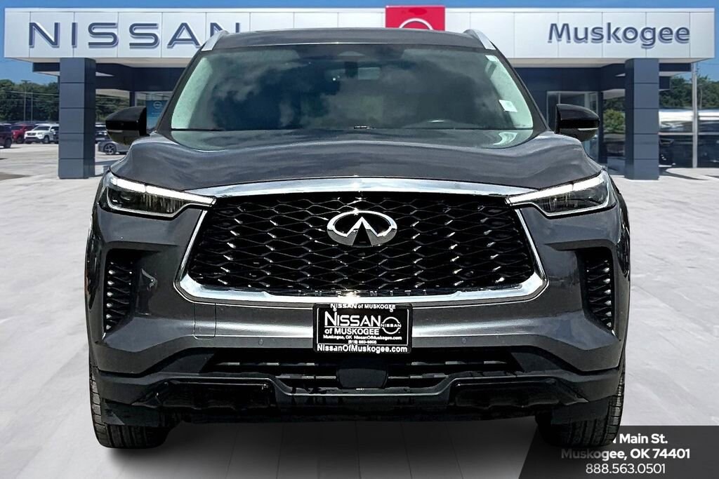 Recent Arrival! **ANDROID CARPLAY**, **APPLE CARPLAY**, **BLUETOOTH**, **CLEAN CARFAX 1-OWNER**, **CLEAN CARFAX**, **HD RADIO**, **HEATED SEATS**, **KEYLESS ENTRY**, **LEATHER**, **MOONROOF**, **NAVIGATION**, **REAR BACKUP CAMERA**, **USB PORT**. 3rd row seats: bench, 4-Wheel Disc Brakes, 4.33 Axle Ratio, 9 Speakers, ABS brakes, Air Conditioning, Alloy wheels, AM/FM radio: SiriusXM, Anti-whiplash front head restraints, Apple CarPlay/Android Auto, Auto High-beam Headlights, Auto tilt-away steering wheel, Auto-dimming door mirrors, Auto-dimming Rear-View mirror, Automatic temperature control, Brake assist, Bumpers: body-color, Climate Controlled Front Bucket Seats, Delay-off headlights, Driver door bin, Driver vanity mirror, Dual front impact airbags, Dual front side impact airbags, Electronic Stability Control, Emergency communication system: INFINITI InTouch, Exterior Parking Camera Rear, Four wheel independent suspension, Front anti-roll bar, Front Bucket Seats, Front Center Armrest, Front dual zone A/C, Front reading lights, Fully automatic headlights, Garage door transmitter: HomeLink, Heated door mirrors, Heated front seats, Heated steering wheel, Illuminated entry, Knee airbag, Leather Shift Knob, Leather steering wheel, Leather-Appointed Seating Surfaces, Low tire pressure warning, Memory seat, Navigation system: INFINITI InTouch Navigation, Occupant sensing airbag, Outside temperature display, Overhead airbag, Overhead console, Panic alarm, Passenger door bin, Passenger vanity mirror, Power door mirrors, Power driver seat, Power Liftgate, Power moonroof, Power passenger seat, Power steering, Power windows, Radio data system, Radio: AM/FM Audio System, Rain sensing wipers, Rear air conditioning, Rear anti-roll bar, Rear reading lights, Rear seat center armrest, Rear side impact airbag, Rear window defroster, Rear window wiper, Reclining 3rd row seat, Remote keyless entry, Security system, Speed control, Speed-sensing steering, Speed-Sensitive Wipers, Split folding rear seat, Spoiler, Steering wheel memory, Steering wheel mounted audio controls, Tachometer, Telescoping steering wheel, Tilt steering wheel, Traction control, Trip computer, Turn signal indicator mirrors, Variably intermittent wipers, Ventilated front seats, and Wheels: 20 x 8J Sporty Machined Aluminum Alloy.2024 INFINITI QX60 LUXE FWD 9-Speed Automatic 3.5L V6 DOHC 24V Graphite Shadow21/26 City/Highway MPG