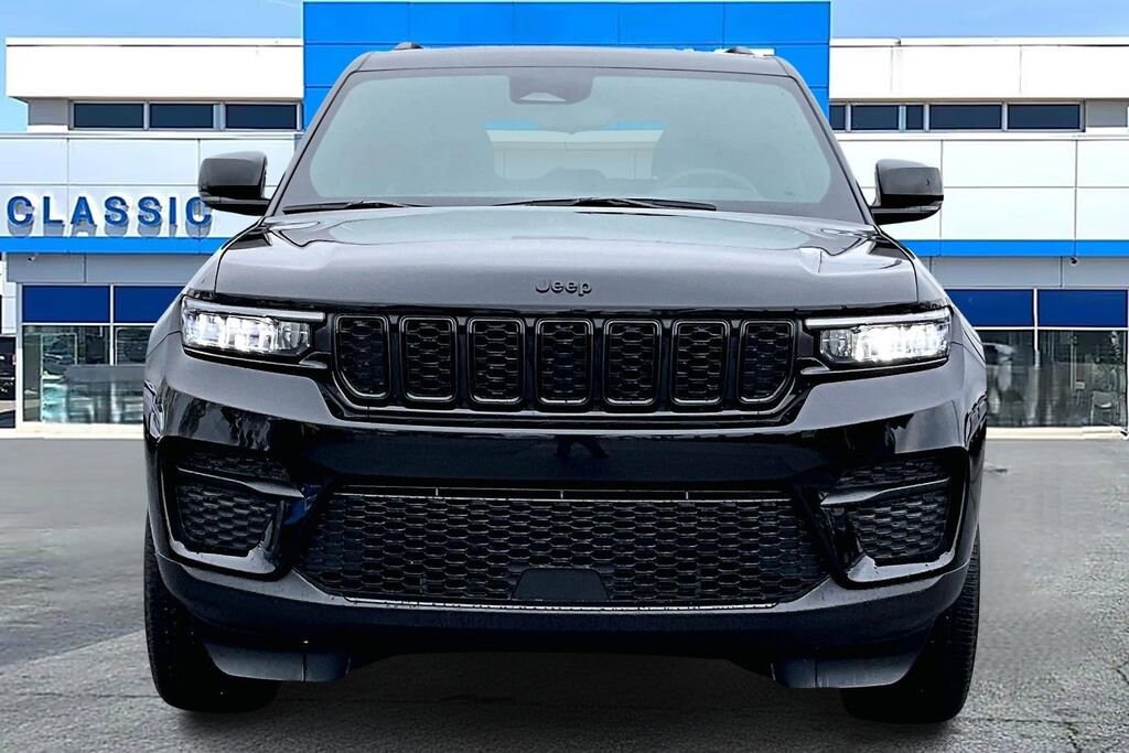 **4WD**, **ANDROID CARPLAY**, **APPLE CARPLAY**, **BLIND SPOT WARNING SYS**, **BLUETOOTH**, **CLEAN CARFAX 1-OWNER**, **CLEAN CARFAX**, **HEATED SEATS**, **KEYLESS ENTRY**, **MOONROOF**, **REAR BACKUP CAMERA**, **REMOTE START**, **USB PORT**. Quick Order Package 23M Altitude X (115V Auxiliary Power Outlet, Altitude X, Black Headliner, Capri Leatherette/Suede Seats, Delete Laredo Badge, Gloss Black Exterior Accents, Heated Front Seats, Heated Steering Wheel, Power Liftgate, Power Sunroof, Rain Sensitive Windshield Wipers, Remote Start System, Selectable Tire Fill Alert, Wheels: 18 x 8 Fully Painted Aluminum 1, and Wireless Charging Pad), 3.45 Rear Axle Ratio, 4-Wheel Disc Brakes, 6 Speakers, ABS brakes, Air Conditioning, Alloy wheels, Anti-whiplash front head restraints, Automatic temperature control, Brake assist, Bumpers: body-color, Cloth Seats, Compass, Delay-off headlights, Driver door bin, Driver vanity mirror, Dual front impact airbags, Dual front side impact airbags, Electronic Stability Control, Emergency communication system, Four wheel independent suspension, Front anti-roll bar, Front Bucket Seats, Front Center Armrest w/Storage, Front dual zone A/C, Front License Plate Bracket, Front reading lights, Fully automatic headlights, Heated door mirrors, Illuminated entry, Knee airbag, Low tire pressure warning, Normal Duty Suspension, Occupant sensing airbag, Outside temperature display, Overhead airbag, Overhead console, Panic alarm, ParkView Rear Back-Up Camera, Passenger door bin, Passenger vanity mirror, Power door mirrors, Power driver seat, Power steering, Power windows, Radio data system, Radio: Uconnect 5 w/8.4 Display, Rear anti-roll bar, Rear reading lights, Rear window defroster, Rear window wiper, Remote keyless entry, Security system, Speed control, Speed-Sensitive Wipers, Split folding rear seat, Spoiler, Steering wheel mounted audio controls, Tachometer, Telescoping steering wheel, Tilt steering wheel, Traction control, Trip computer, Variably intermittent wipers, Voltmeter, Wheels: 17 x 6.5 Fully Painted Aluminum, and Wheels: 20 x 8.5 Gloss Black Painted Aluminum. Odometer is 8163 miles below market average!2024 Jeep Grand Cherokee Altitude X 4WD 8-Speed Automatic 3.6L V6 24V VVT Diamond Black Crystal Pearlcoat19/26 City/Highway MPG