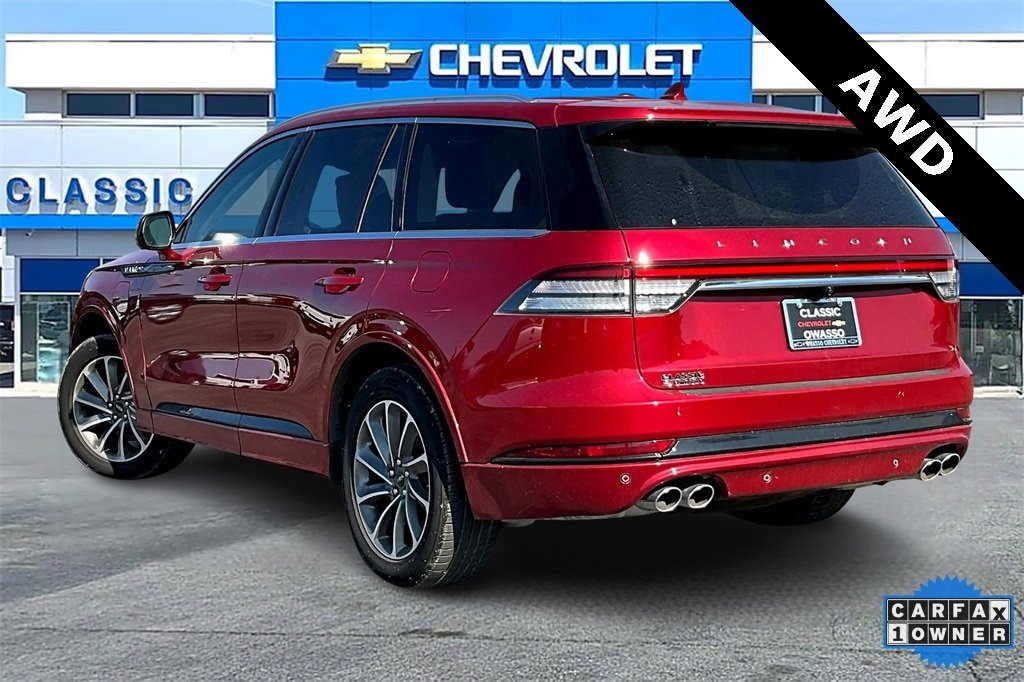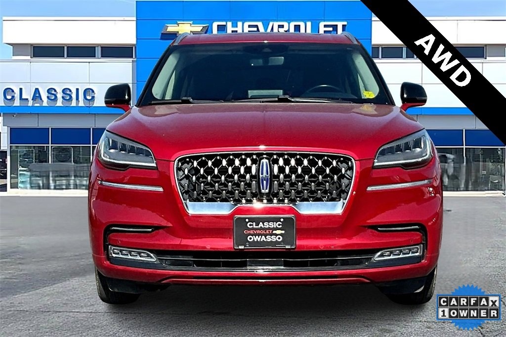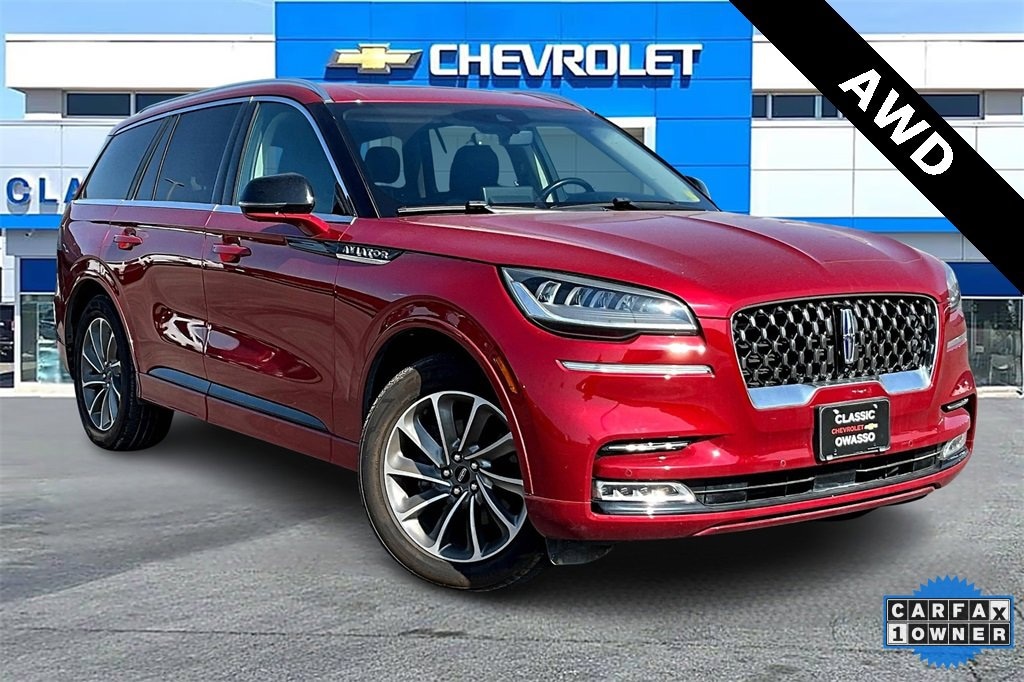 **1-OWNER**, **ANDROID CARPLAY**, **APPLE CARPLAY**, **AWD**, **BLIND SPOT WARNING SYS**, **BLUETOOTH**, **HD RADIO**, **HEATED SEATS**, **KEYLESS ENTRY**, **LANE DEPARTURE WARNING**, **LEATHER**, **MOONROOF**, **NAVIGATION**, **REAR BACKUP CAMERA**, **USB PORT**. Elements Package Plus (Heated Steering Wheel, Heated VisioBlade Wipers, Heated/Ventilated 2nd Row Outboard Seats, and Heated/Ventilated Driver & Passenger Seats), Equipment Group 300A, 14 Speakers, 20 Ultra Bright Machined Aluminum Wheels, 2nd Row Bench Seat, 3.31 Axle Ratio, 3rd row seats: split-bench, 4-Wheel Disc Brakes, ABS brakes, Adaptive suspension, Air Conditioning, All-Weather Floor Liners, Alloy wheels, AM/FM radio: SiriusXM, Audio memory, Auto High-beam Headlights, Auto-dimming door mirrors, Auto-dimming Rear-View mirror, Automatic temperature control, Brake assist, Bumpers: body-color, Cargo Area Cover, Cargo Area Protector (Dealer Installed), Compass, Delay-off headlights, Driver door bin, Driver vanity mirror, Dual front impact airbags, Dual front side impact airbags, Electronic Stability Control, Emergency communication system: SYNC 3 911 Assist, Four wheel independent suspension, Front anti-roll bar, Front Bucket Seats, Front Center Armrest, Front dual zone A/C, Front fog lights, Front reading lights, Fully automatic headlights, Garage door transmitter, Heated door mirrors, Heated front seats, HVAC memory, Illuminated entry, Knee airbag, Low tire pressure warning, Memory seat, Navigation System, Occupant sensing airbag, Outside temperature display, Overhead airbag, Overhead console, Panic alarm, Passenger door bin, Passenger vanity mirror, Power door mirrors, Power driver seat, Power Liftgate, Power moonroof, Power passenger seat, Power steering, Power windows, Premium Leather Enhanced Micro-Perforated Seats, Radio data system, Radio: Revel AM/FM Audio System w/14 Speakers, Rain sensing wipers, Rear air conditioning, Rear anti-roll bar, Rear audio controls, Rear dual zone A/C, Rear reading lights, Rear window defroster, Rear window wiper, Remote keyless entry, Security system, SiriusXM Radio, Speed control, Speed-Sensitive Wipers, Split folding rear seat, Spoiler, Steering wheel memory, Steering wheel mounted A/C controls, Steering wheel mounted audio controls, SYNC 3 Communication & Entertainment System, Tachometer, Telescoping steering wheel, Tilt steering wheel, Traction control, Trip computer, Turn signal indicator mirrors, Variably intermittent wipers, and Ventilated front seats. Odometer is 3329 miles below market average!2020 Lincoln Aviator Grand Touring AWD 10-Speed Automatic 3.0L V6 Hybrid Turbocharged DOHC 24V LEV3-SULEV30 RedAwards:* 2020 KBB.com 10 Best SUVs Worth Waiting For