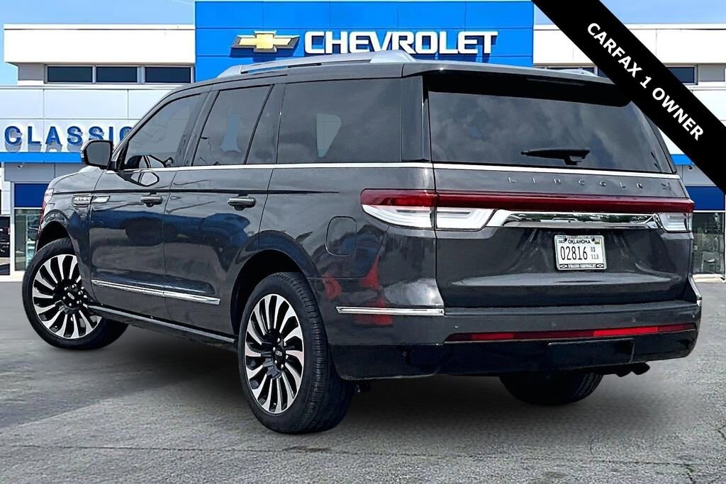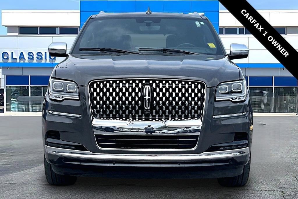 **4WD**, **ANDROID CARPLAY**, **APPLE CARPLAY**, **AUTO HEADLIGHTS**, **BLIND SPOT WARNING SYS**, **BLUETOOTH**, **CLEAN CARFAX 1-OWNER**, **CLEAN CARFAX**, **HD RADIO**, **HEATED & VENTILATED SEATS**, **KEYLESS ENTRY**, **LANE DEPARTURE WARNING**, **LEATHER**, **MOONROOF**, **NAVIGATION**, **POWER ADJUSTABLE DRIVERS SEAT**, **POWER ADJUSTABLE PASSENGER SEAT**, **REAR BACKUP CAMERA**, **RUNNING BOARDS**, **TOW PACKAGE**, **USB PORT**. Equipment Group 800A Black Label, 28 Speakers, 2nd Row Htd/Vent Enhanced Massage Seats w/Console, 3.73 Axle Ratio, 3rd row seats: split-bench, 4-Wheel Disc Brakes, ABS brakes, Active Park Assist 2.0 Delete, Adaptive suspension, Adjustable pedals, Air Conditioning, All-Weather Floor Liners w/Carpet Floor Mats, Alloy wheels, AM/FM radio: SiriusXM with 360L, Audio memory, Auto High-beam Headlights, Auto Start-Stop Technology, Auto tilt-away steering wheel, Auto-dimming door mirrors, Auto-dimming Rear-View mirror, Auto-leveling suspension, Automatic temperature control, Bodyside moldings, Brake assist, Bumpers: body-color, Compass, Delay-off headlights, Driver door bin, Driver vanity mirror, Driver's Seat Mounted Armrest, Dual front impact airbags, Dual front side impact airbags, Electronic Stability Control, Emergency communication system: 911 Assist, Exterior Parking Camera Rear, Floor Carpet/Mats - Espresso w/Dinamica Suede, Four wheel independent suspension, Front anti-roll bar, Front Bucket Seats, Front dual zone A/C, Front fog lights, Front reading lights, Fully automatic headlights, Garage door transmitter, Genuine wood console insert, Genuine wood door panel insert, Hands-Free Liftgate Delete, Head restraints memory, Headliner - Alpine Dinamica Suede, Heads-Up Display, Heated door mirrors, Heated front seats, Heated rear seats, Heated steering wheel, HVAC memory, Illuminated entry, Leather steering wheel, Leather-Wrapped Interior - Alpine w/Black Stitch, Low tire pressure warning, Memory seat, Navigation system: Connected Navigation (3-year trial), Occupant sensing airbag, Outside temperature display, Overhead airbag, Overhead console, Panic alarm, Passenger door bin, Passenger seat mounted armrest, Passenger vanity mirror, Pedal memory, Power adjustable front head restraints, Power adjustable rear head restraints, Power door mirrors, Power driver seat, Power Liftgate, Power moonroof: Panoramic Vista Roof, Power passenger seat, Power steering, Power windows, Radio data system, Radio: Revel Ultima 3D Audio System w/28 Speakers, Rain sensing wipers, Rear air conditioning, Rear anti-roll bar, Rear audio controls, Rear reading lights, Rear seat center armrest, Rear window defroster, Rear window wiper, Reclining 3rd row seat, Remote keyless entry, Security system, Silverwood Recon Appliques, SiriusXM w/360L, Speed control, Speed-sensing steering, Speed-Sensitive Wipers, Split folding rear seat, Spoiler, Steering wheel memory, Steering wheel mounted audio controls, SYNC 4 Communications & Entertainment System, Tachometer, Telescoping steering wheel, Tilt steering wheel, Traction control, Trip computer, Turn signal indicator mirrors, Variably intermittent wipers, Venetian Lthr Auto Htd/Ventilatd Capt's Chairs (B), Ventilated front seats, Ventilated rear seats, Voice-Activated Touchscreen Navigation System, and Wheels: 22 14-Spoke Bright Machined Aluminum. Odometer is 16926 miles below market average!2023 Lincoln Navigator Black Label 4WD 10-Speed Automatic V6 Dark Gray Metallic