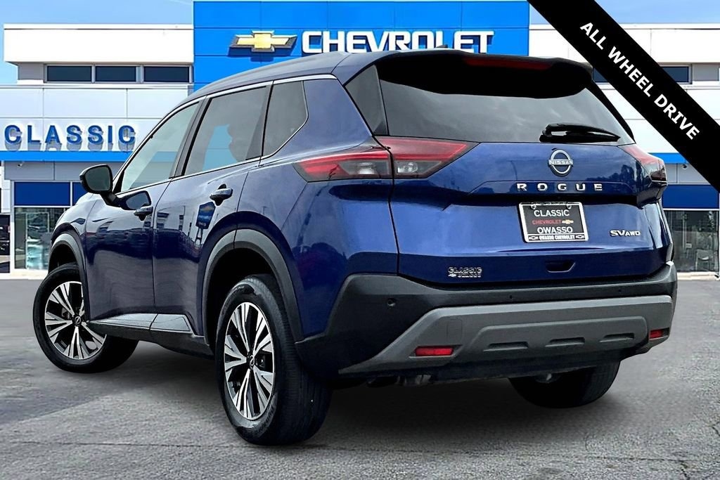 **ANDROID CARPLAY**, **APPLE CARPLAY**, **AWD**, **BLUETOOTH**, **CLEAN CARFAX**, **HD RADIO**, **LOCAL TRADE**, **NAVIGATION**, **NON-SMOKER**, Heated Driver & Front Passenger Seats, Heated Leather Wrapped Steering Wheel, Leatherette Door Trim Inserts w/Stitch, Power Liftgate, Power Panoramic Moonroof, PRIMATEX Leatherette Seat Trim, Rear Door Sunshades, Rear Personal Lights, Silver Painted Roof Rails, SV Premium Package. SV Premium Package (Heated Driver & Front Passenger Seats, Heated Leather Wrapped Steering Wheel, Leatherette Door Trim Inserts w/Stitch, Power Liftgate, Power Panoramic Moonroof, PRIMATEX Leatherette Seat Trim, Rear Door Sunshades, Rear Personal Lights, and Silver Painted Roof Rails), 18 Aluminum Alloy Wheels, 4-Wheel Disc Brakes, 5.604 Axle Ratio, 6 Speakers, ABS brakes, Air Conditioning, Alloy wheels, AM/FM Radio, AM/FM radio: SiriusXM, Auto High-beam Headlights, Automatic temperature control, Brake assist, Bumpers: body-color, Cloth Seat Trim, Delay-off headlights, Driver door bin, Driver vanity mirror, Dual front impact airbags, Dual front side impact airbags, Electronic Stability Control, Emergency communication system: NissanConnect Services, First Aid Kit, Floor Mats w/1-Piece Cargo Area Protector, Four wheel independent suspension, Front anti-roll bar, Front Bucket Seats, Front Center Armrest, Front dual zone A/C, Front reading lights, Fully automatic headlights, Heated door mirrors, Illuminated entry, Knee airbag, Low tire pressure warning, NissanConnect featuring Apple CarPlay and Android Auto, Occupant sensing airbag, Outside temperature display, Overhead airbag, Overhead console, Panic alarm, Passenger door bin, Passenger vanity mirror, Power door mirrors, Power driver seat, Power steering, Power windows, Radio data system, Rear anti-roll bar, Rear Parking Sensors, Rear seat center armrest, Rear side impact airbag, Rear window defroster, Rear window wiper, Remote keyless entry, Security system, Speed control, Speed-Sensitive Wipers, Split folding rear seat, Spoiler, Steering wheel mounted audio controls, Tachometer, Telescoping steering wheel, Tilt steering wheel, Traction control, Trip computer, Turn signal indicator mirrors, and Variably intermittent wipers.2022 Nissan Rogue SV AWD CVT with Xtronic 1.5L I3 Turbocharged DOHC 12V LEV3-ULEV50 201hp Caspian Blue Metallic28/35 City/Highway MPG