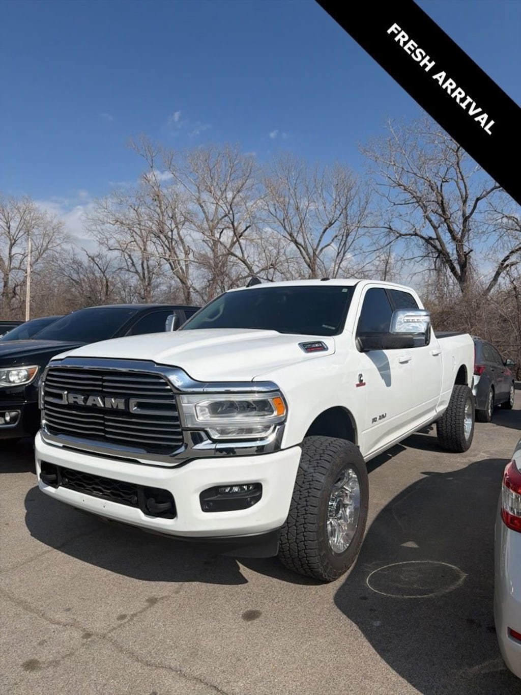 Recent Arrival! **4WD**, **ANDROID CARPLAY**, **APPLE CARPLAY**, **AUTO HEADLIGHTS**, **BLUETOOTH**, **CLEAN CARFAX**, **HEATED SEATS**, **KEYLESS ENTRY**, **LEATHER**, **REAR BACKUP CAMERA**, **REMOTE START**, **TOW PACKAGE**, **USB PORT**. Laramie Level 1 Equipment Group (12 Touchscreen Display, 2nd Row In Floor Storage Bins, 4G LTE Wi-Fi Hot Spot, Alexa Built-In, Apple CarPlay, Auto Adjust In Reverse Exterior Mirrors, Auto Dim Exterior Mirror, Auto High Beam Headlamp Control, Auto Power-Folding Mirrors, Auto-Dimming Exterior Passenger Mirror, Blind Spot & Cross Path Detection, Chrome Exterior Mirrors, Connected Travel & Traffic Services, Connectivity - US/Canada, Disassociated Touchscreen Display, Exterior Mirrors Courtesy Lamps, Exterior Mirrors w/Heating Element, Exterior Mirrors w/Memory, Exterior Mirrors w/Supplemental Signals, Foam Bottle Insert (Door Trim Panel), For Details, Visit DriveUconnect.com, For More Info, Call 800-643-2112, Forward & Reverse Utility Lights, Front LED Fog Lamps, Global Telematics Box Module (TBM), Google Android Auto, GPS Antenna Input, GPS Navigation, HD Radio, Integrated Voice Command w/Bluetooth, LED Reflector Headlamps, Mirror Running Lights, Off-Road Information Pages, ParkSense Front/Rear Park Assist System, Power Adjust Mirrors, Power Adjustable Convex Aux Mirrors, Power Adjustable Pedals w/Memory, Power Heated Fold Telescopic Mirrors w/Memory, Power Telescoping Mirrors, Radio: Uconnect 5 Nav w/12.0 Display, Radio/Driver Seat/Mirrors/Pedals Memory, Rain Sensitive Windshield Wipers, Rear Power Sliding Window, Rear Window Defroster, Remote Tailgate Release, Selectable Tire Fill Alert, SiriusXM Radio Service, SiriusXM w/360L, and Trailer Tow Pages), Quick Order Package 2HH Laramie, 10 Speakers, 115V Auxiliary Rear Power Outlet, 2 Way Rear Headrest Seat, 220 Amp Alternator, 3.73 Axle Ratio, 4 Way Front Headrests, 4-Wheel Disc Brakes, ABS brakes, Active Noise Control System, Air Conditioning, Alloy wheels, AM/FM radio: SiriusXM with 360L, Anti-Spin Differential Rear Axle, Apple CarPlay/Android Auto, Auto-dimming Rear-View mirror, Automatic temperature control, Brake assist, Bumpers: body-color, Compass, Delay-off headlights, Driver door bin, Driver vanity mirror, Dual front impact airbags, Dual front side impact airbags, Electronic Stability Control, Electronically Controlled Throttle, Front anti-roll bar, Front Center Armrest w/Storage, Front dual zone A/C, Front License Plate Bracket, Front reading lights, Front Seat Back Map Pockets, Fully automatic headlights, Garage door transmitter, Heated door mirrors, Heated Front Seats, Heated front seats, Heated Steering Wheel, Heated steering wheel, Illuminated entry, Leather steering wheel, Leather Trim 40/20/40 Bench Seat, Low tire pressure warning, Manufacturer's Statement of Origin, Navigation System, Occupant sensing airbag, Outside temperature display, Overhead airbag, Overhead console, Panic alarm, ParkView Rear Back-Up Camera, Passenger door bin, Passenger vanity mirror, Power 2-Way Driver Lumbar Adjust, Power 2-Way Passenger Lumbar Adjust, Power Adjust 8-Way Driver Seat, Power Adjust 8-Way Front Passenger Seat, Power door mirrors, Power driver seat, Power passenger seat, Power steering, Power windows, Radio data system, Radio: Uconnect 5 Nav w/8.4 Display, Rear 60/40 Folding Seat, Rear anti-roll bar, Rear reading lights, Rear seat center armrest, Rear step bumper, Rear window defroster, Remote keyless entry, Security system, Speed control, Split folding rear seat, Steering wheel mounted audio controls, Tachometer, Tilt steering wheel, Tip Start, Tow Hooks, Traction control, Trip computer, Turn signal indicator mirrors, Variably intermittent wipers, Vendor Painted Cargo Box, Vendor Painted Cargo Box Tracking, Voltmeter, and Wheels: 18 x 8.0 Polished AluminuM. Odometer is 21875 miles below market average!