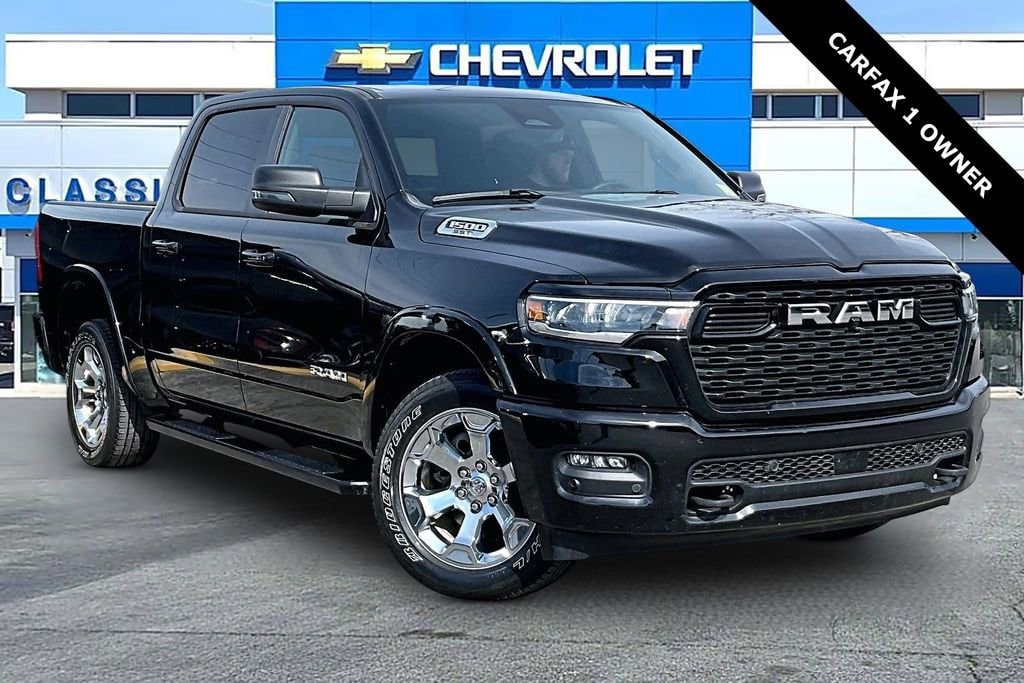 Recent Arrival! **1-OWNER**, **4WD**, **ANDROID CARPLAY**, **APPLE CARPLAY**, **AUTO HEADLIGHTS**, **BLIND SPOT WARNING SYS**, **BLUETOOTH**, **DAYTIME RUNNING LIGHTS**, **HEATED SEATS**, **KEYLESS ENTRY**, **LANE DEPARTURE WARNING**, **REAR BACKUP CAMERA**, **REMOTE START**, **TOW PACKAGE**, **USB PORT**. Big Horn Level 1 Equipment Group (115V Auxiliary Power Outlet, 2nd Row In Floor Storage Bins, 400W Inverter, Auto Power-Folding Mirrors, Auto-Dimming Exterior Driver Mirror, Auto-Dimming Rear-View Mirror, Black Exterior Mirrors, Black Premium Power Mirrors, Convex Wide-Angle Exterior Mirror Insert, Exterior Mirrors Courtesy Lamps, Exterior Mirrors w/Heating Element, Exterior Mirrors w/Supplemental Signals, Glove Box Lamp, Heated Front Seats, Heated Steering Wheel, Leather Wrapped Steering Wheel, Power 2-Way Driver Lumbar Adjust, Power Adjust 8-Way Driver Seat, Power Adjustable Pedals, Rear Power Sliding Window, Rear Window Defroster, Steering Wheel Mounted Audio Controls, Sun Visors w/Illuminated Vanity Mirrors, and Universal Garage Door Opener), Protection Group (Tow Hooks), Quick Order Package 21Z Big Horn, Sport Appearance Package (3 Rear Seat Head Restraints, 4 Way Front Headrests, Black Interior Accents, Body Color Door Handles, Body Color Front Bumper, Body Color Rear Bumper w/Step Pads, Body Color Tailgate Handle, Bucket Seats, Deluxe Cloth Bucket Seats, Front Seat Back Map Pockets, Full Length Floor Console, Grille Surround 1 Body Color Texture 1 Black, Manual Adjust 4-Way Front Passenger Seat, RAM Grille Badge - Chrome, Rear 60/40 Folding Seat, and Rear Center Armrest), 4-Wheel Disc Brakes, 4G LTE Wi-Fi Hot Spot, 6 Speakers, ABS brakes, Air Conditioning, Alloy wheels, AM/FM radio, Anti-Spin Differential Rear Axle, Apple CarPlay/Android Auto, Auto High-beam Headlights, Brake assist, Bumpers: chrome, Cloth Bench Seat, Compass, Connectivity - US/Canada, Delay-off headlights, Driver door bin, Dual front impact airbags, Dual front side impact airbags, Electronic Stability Control, Front anti-roll bar, Front Center Armrest w/Storage, Front fog lights, Front License Plate Bracket, Front reading lights, Front wheel independent suspension, Fully automatic headlights, GPS Antenna Input, Heated door mirrors, Illuminated entry, Integrated Voice Command w/Bluetooth, Low tire pressure warning, Manual Folding Exterior Mirrors, Occupant sensing airbag, Outside temperature display, Overhead airbag, Overhead console, Panic alarm, ParkView Rear Back-Up Camera, Passenger door bin, Passenger vanity mirror, Power door mirrors, Power steering, Power windows, Radio data system, Radio: Uconnect 5 W w/8.4 Display, Rear anti-roll bar, Rear seat center armrest, Rear step bumper, Remote keyless entry, Speed control, Split folding rear seat, Supplier Part Tracking (J-1), Tachometer, Telescoping steering wheel, Tilt steering wheel, Traction control, Trailer Brake Control, Trip computer, USB Host Flip, Variably intermittent wipers, Voltmeter, Wheels: 18 x 8 Cast-Aluminum Painted, and Wheels: 20 x 9 Aluminum Chrome Clad (WRK) Odometer is 12167 miles below market average!2025 Ram 1500 Big Horn/Lone Star 4WD 8-Speed Automatic 3.0L I6 Diamond Black Crystal Pearlcoat