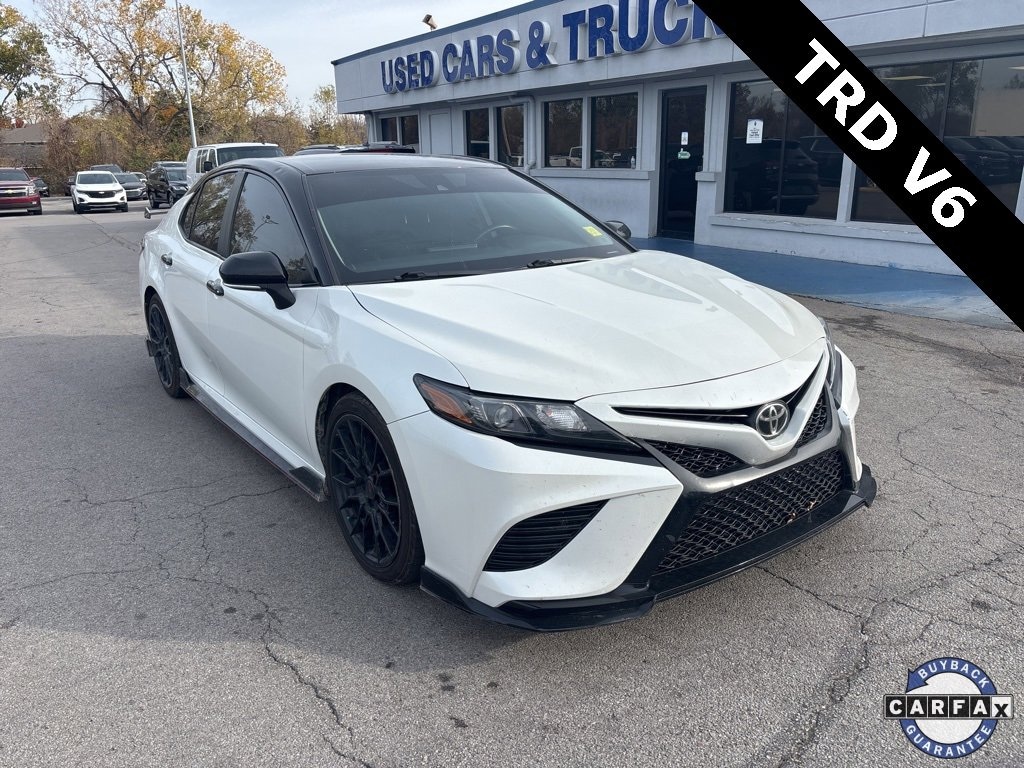 Recent Arrival! **BLUETOOTH**, **CLEAN CARFAX**, **KEYLESS ENTRY**, **LOCAL TRADE**, **NON-SMOKER**, **REAR BACKUP CAMERA**. 4-Wheel Disc Brakes, 6 Speakers, ABS brakes, Air Conditioning, Alloy wheels, AM/FM radio: SiriusXM, Apple CarPlay/Android Auto, Auto High-beam Headlights, Automatic temperature control, Brake assist, Bumpers: body-color, Delay-off headlights, Driver door bin, Driver vanity mirror, Dual front impact airbags, Dual front side impact airbags, Electronic Stability Control, Emergency communication system: Safety Connect with 1-year trial, Exterior Parking Camera Rear, Fabric Seat Trim w/Sport SofTex, Four wheel independent suspension, Front anti-roll bar, Front Bucket Seats, Front Center Armrest, Front reading lights, Fully automatic headlights, Heated door mirrors, Illuminated entry, Knee airbag, Low tire pressure warning, Occupant sensing airbag, Outside temperature display, Overhead airbag, Overhead console, Panic alarm, Passenger door bin, Passenger vanity mirror, Power door mirrors, Power driver seat, Power steering, Power windows, Radio data system, Radio: AM/FM Audio System, Rear anti-roll bar, Rear reading lights, Rear seat center armrest, Rear side impact airbag, Rear window defroster, Remote keyless entry, Security system, Speed control, Speed-sensing steering, Spoiler, Steering wheel mounted audio controls, Tachometer, Telescoping steering wheel, Tilt steering wheel, Traction control, TRD Bumper, TRD LED Low Headlamp, TRD Luggage Door, TRD Rear Spoiler, Trip computer, Turn signal indicator mirrors, Variably intermittent wipers, and Wheels: 8.5J x 19 TRD Matte Black Alloy.2021 Toyota Camry TRD V6 FWD 8-Speed Automatic 3.5L V6 DOHC 24V White22/31 City/Highway MPG