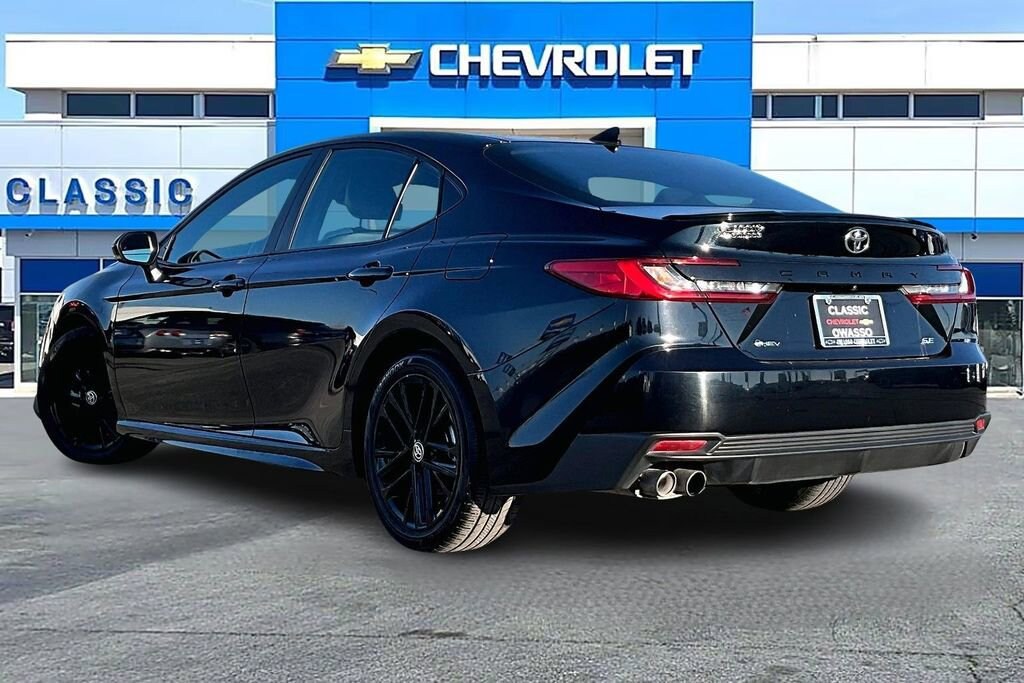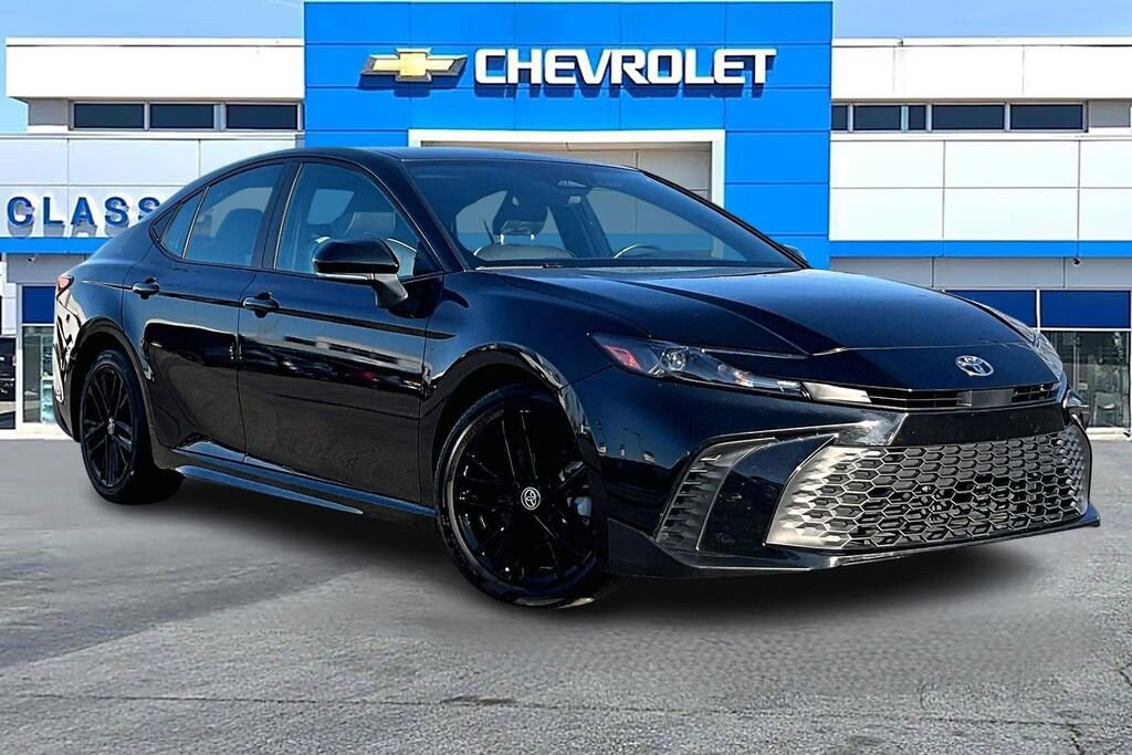 Recent Arrival! **1-OWNER**, **ANDROID CARPLAY**, **APPLE CARPLAY**, **BLUETOOTH**, **CLEAN CARFAX 1-OWNER**, **CLEAN CARFAX**, **HD RADIO**, **HEATED SEATS**, **KEYLESS ENTRY**, **REAR BACKUP CAMERA**, **USB PORT**. 4-Wheel Disc Brakes, 6 Speakers, ABS brakes, Air Conditioning, Alloy wheels, AM/FM radio: SiriusXM, Apple CarPlay/Android Auto, Auto High-beam Headlights, Automatic temperature control, Brake assist, Bumpers: body-color, Delay-off headlights, Driver door bin, Driver vanity mirror, Dual front impact airbags, Dual front side impact airbags, Electronic Stability Control, Emergency communication system: Safety Connect (up to 10-year trial subscription), Exterior Parking Camera Rear, Four wheel independent suspension, Front anti-roll bar, Front Bucket Seats, Front Center Armrest, Front dual zone A/C, Front reading lights, Fully automatic headlights, Heated door mirrors, Illuminated entry, Knee airbag, Leather Shift Knob, Leather steering wheel, Low tire pressure warning, Occupant sensing airbag, Outside temperature display, Overhead airbag, Overhead console, Panic alarm, Passenger door bin, Passenger vanity mirror, Power door mirrors, Power driver seat, Power steering, Power windows, Radio data system, Radio: Toyota Audio Multimedia w/12.3 Touchscreen, Radio: Toyota Audio Multimedia w/8 Touchscreen, Rear anti-roll bar, Rear reading lights, Rear seat center armrest, Rear side impact airbag, Rear window defroster, Remote keyless entry, Security system, SofTex & Fabric Seat Trim, Speed control, Speed-sensing steering, Split folding rear seat, Spoiler, Steering wheel mounted audio controls, Telescoping steering wheel, Tilt steering wheel, Traction control, Trip computer, Turn signal indicator mirrors, Variably intermittent wipers, and Wheels: 18 Black-Finished Alloy.2025 Toyota Camry SE FWD eCVT 2.5L 4-Cylinder 16V DOHC Black48/47 City/Highway MPG